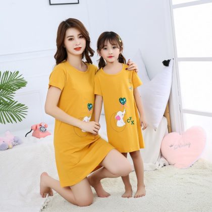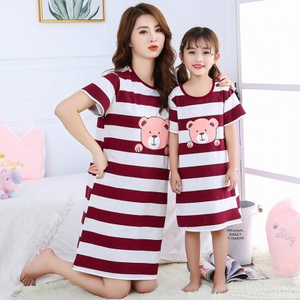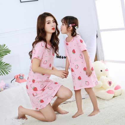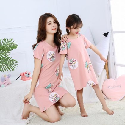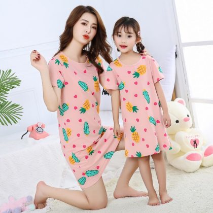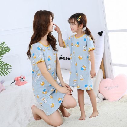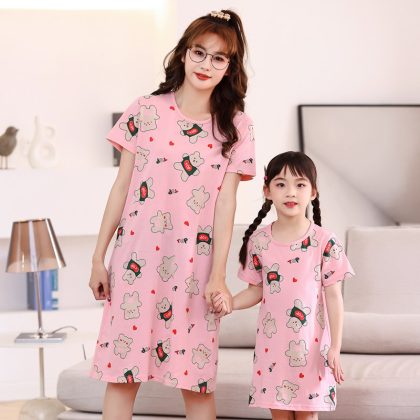| nameOriginal | Summer Parent Children's Cartoon Printed Thin Round Neck Cotton Dress Nightdress Women's Home Clothes a Generation of Hair |
