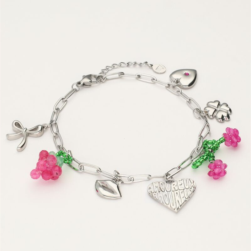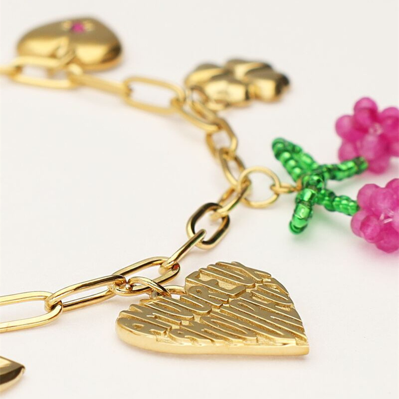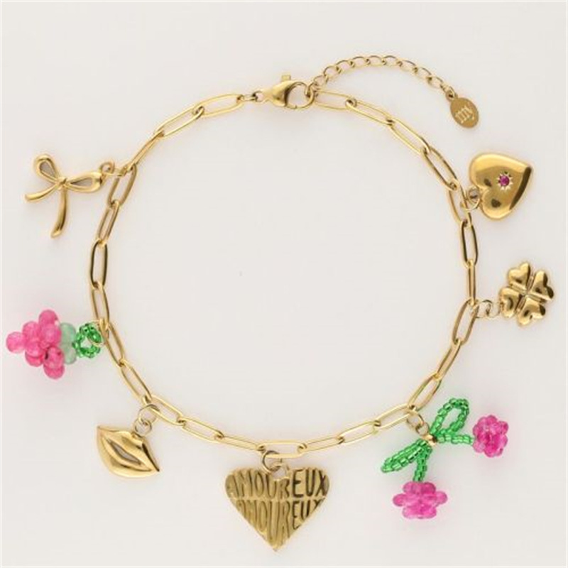 | nameOriginal | Summer pastoral style diy pendant love four-leaf clover bow pendant color necklace gold plated jewelry wholesale |