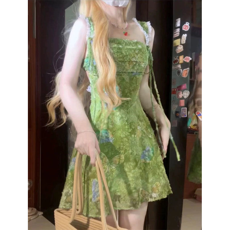 | nameOriginal | Summer Pastoral Style Wizard of Oz Lace Stitching Backless Sling Floral Sling dress Women's Sweet Style Skirt |