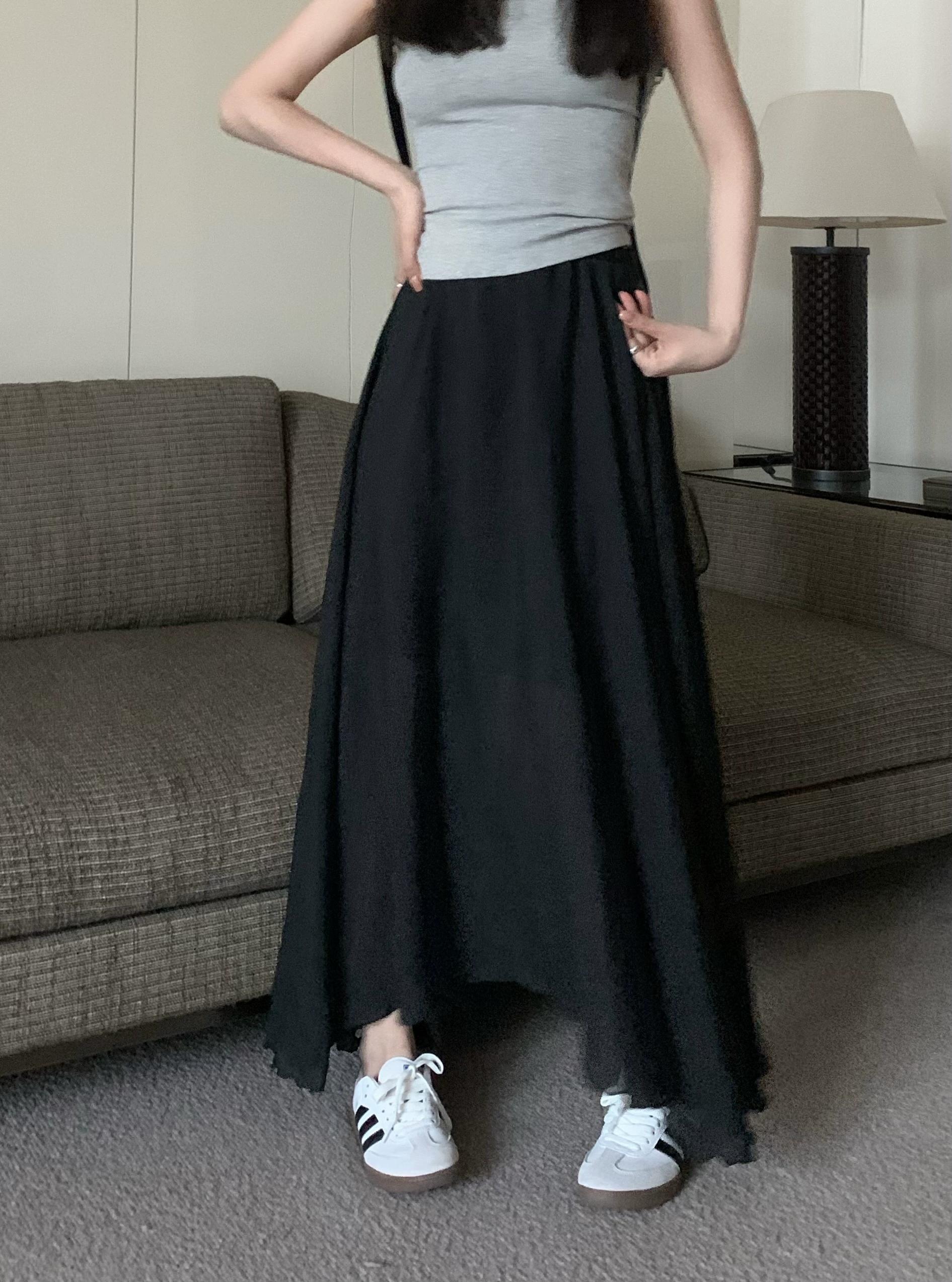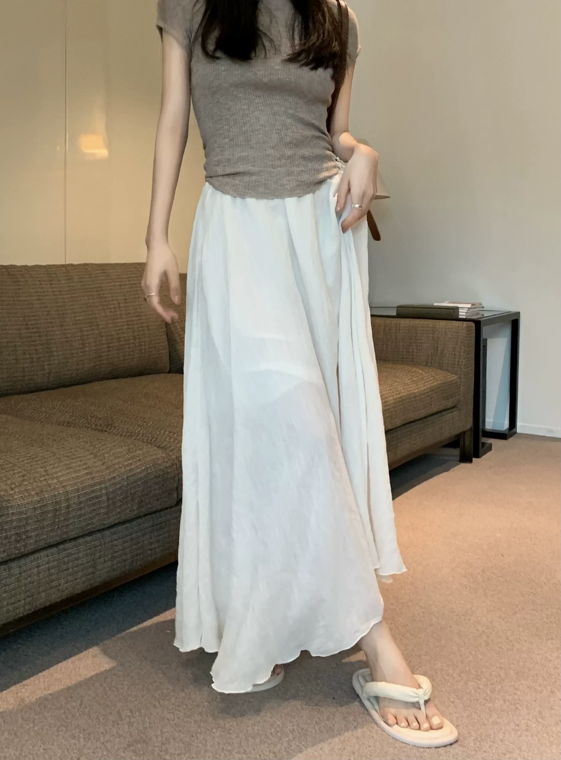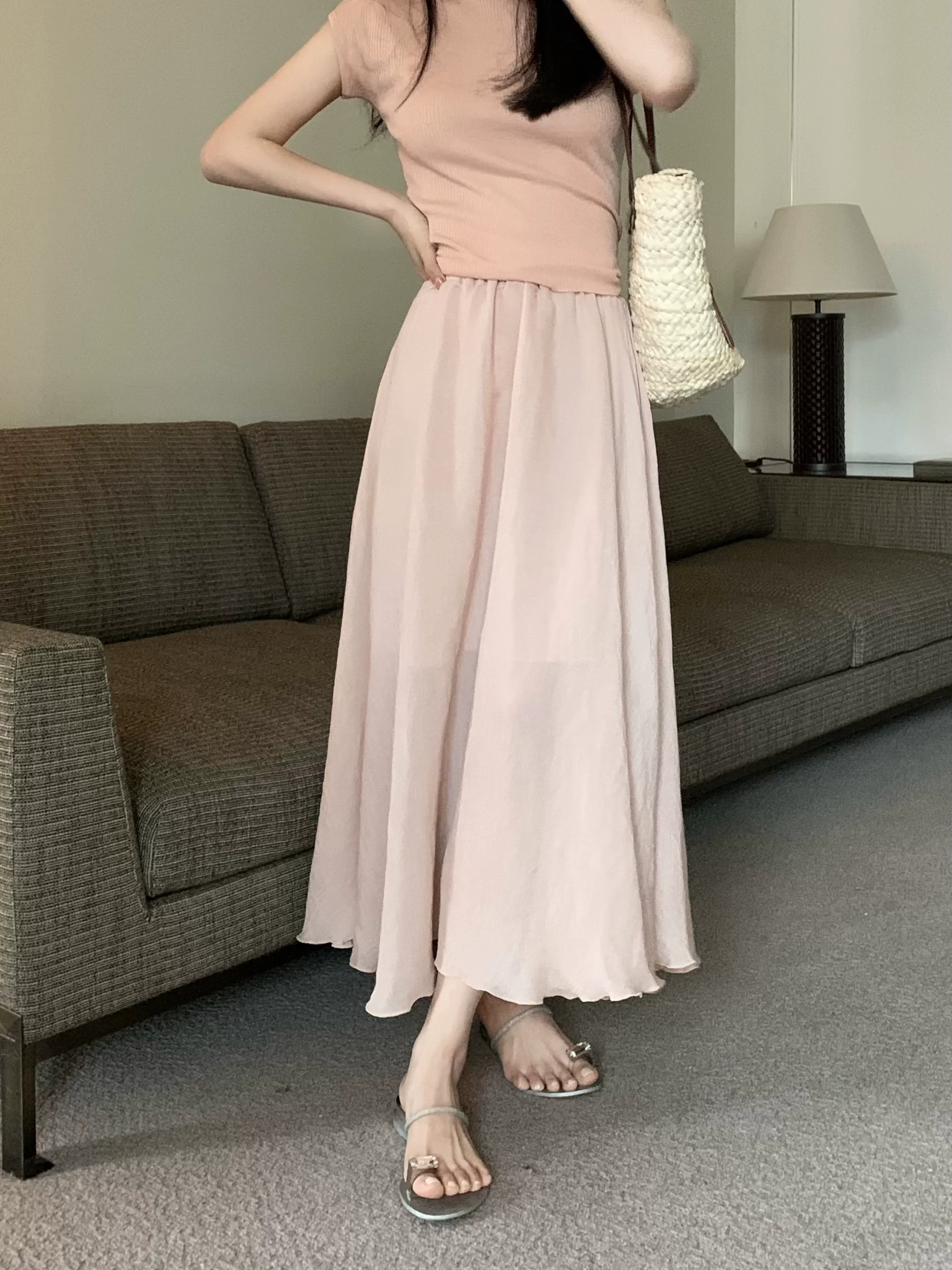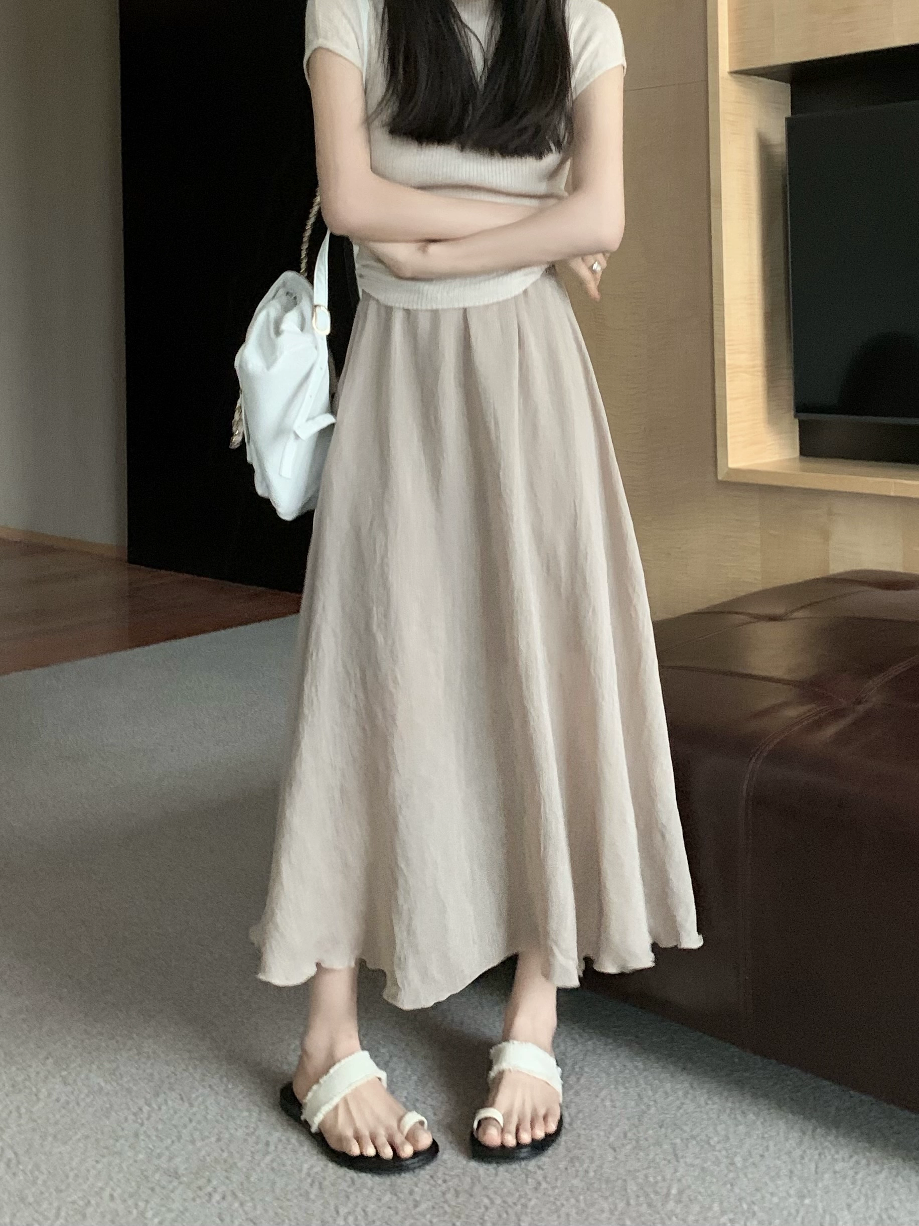 | nameOriginal | Summer pink cotton and linen mid-length gentle style A-line skirt |