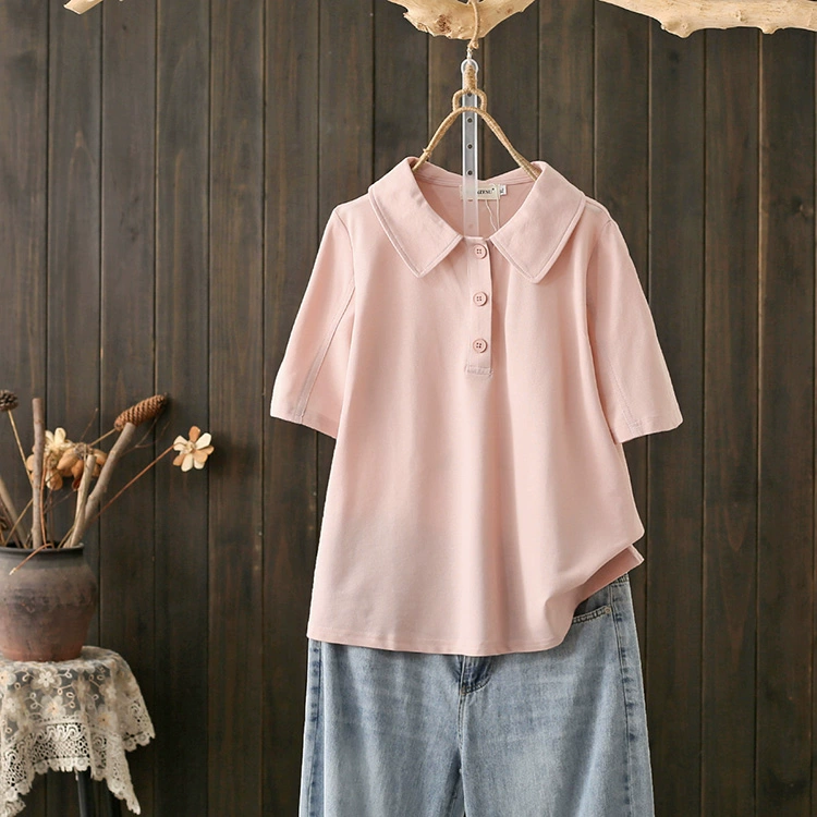 | nameOriginal | Summer plus size 200 pounds Korean style short-sleeved T-shirt for women with design sense niche Polo collar hot girls age-reducing tops |