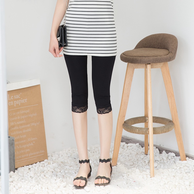Summer plus size Cropped Pants Women's Thin Modal Leggings Pants Stretch Outer Wear Slimming Lace Cropped Pants