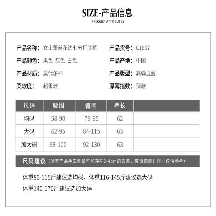 Summer plus size Cropped Pants Women’s Thin Modal Leggings Pants Stretch Outer Wear Slimming Lace Cropped Pants