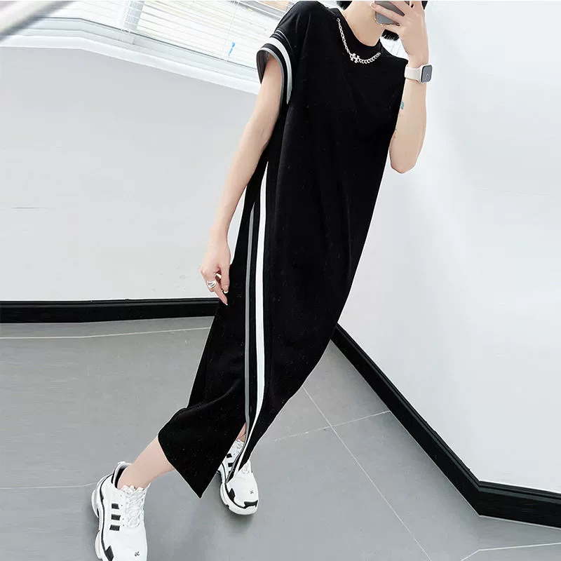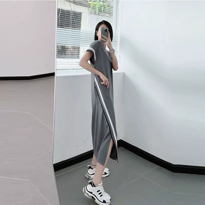| nameOriginal | Summer plus size women's clothing, fat mm2-300 pounds, right shoulder dress, short sleeves, loose, slimming, belly-covering, knee-length skirt |