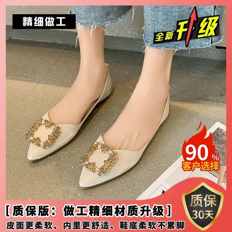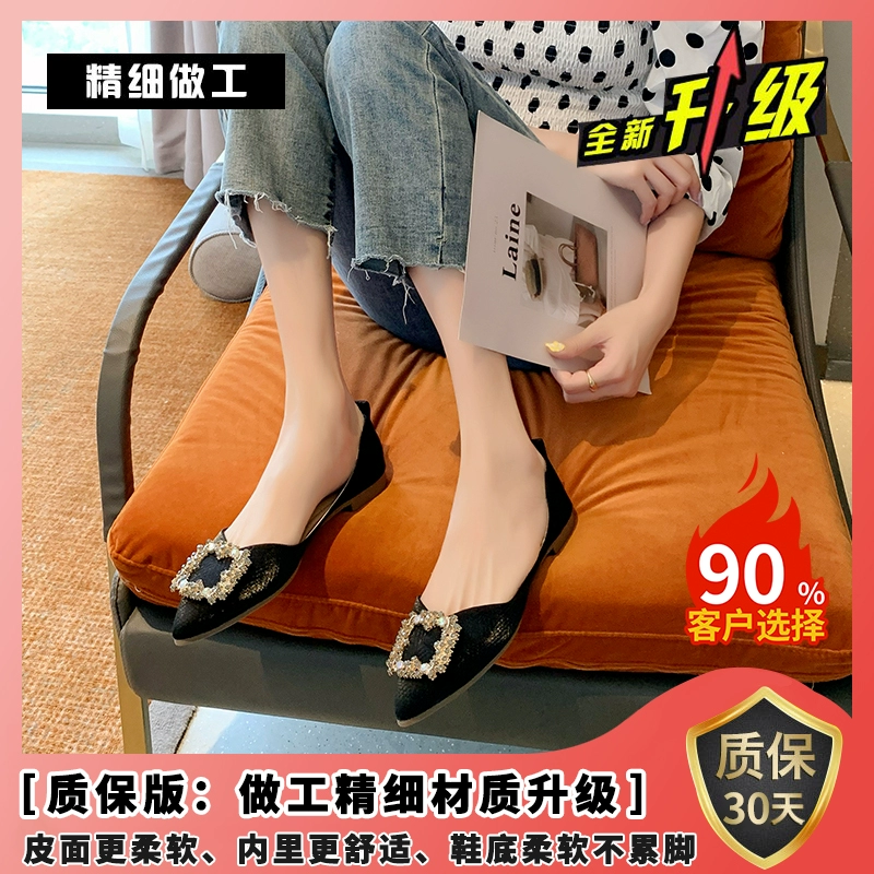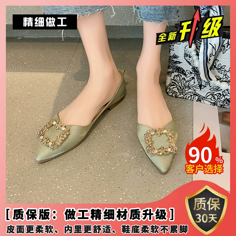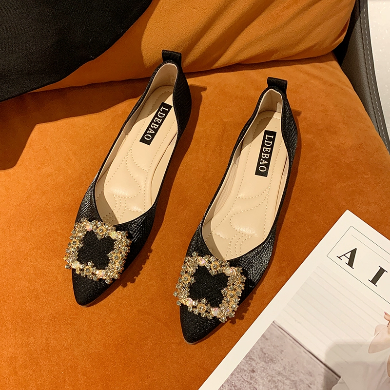 | nameOriginal | Summer pointed toe spring and autumn French rhinestone square buckle flat shoes |