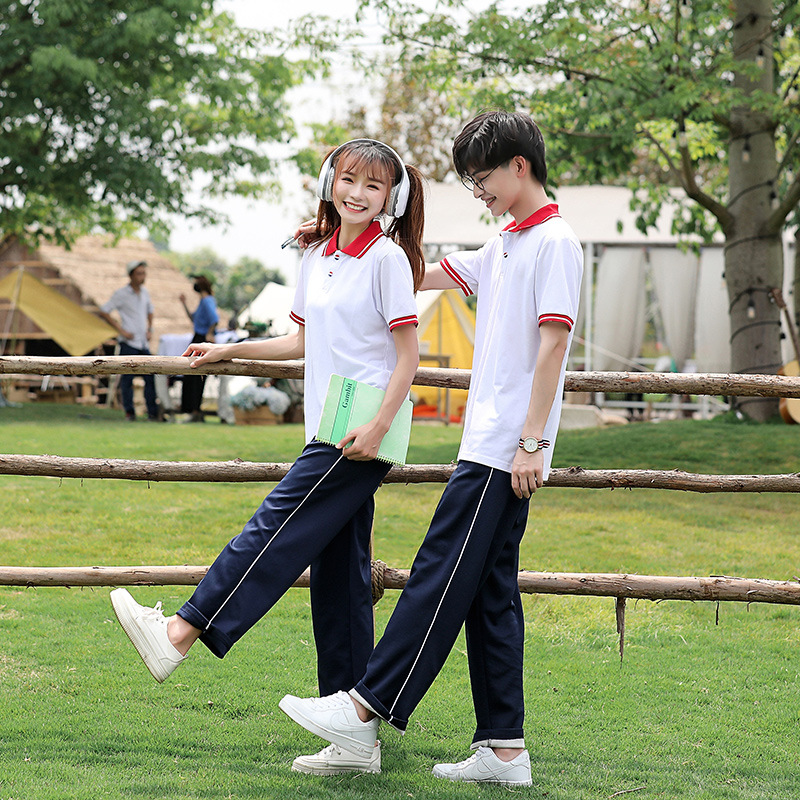 Summer POLO Shirt Trousers Couple Two-piece Set High School Students’ College Style Short-sleeved Top Campus Class Clothes suit