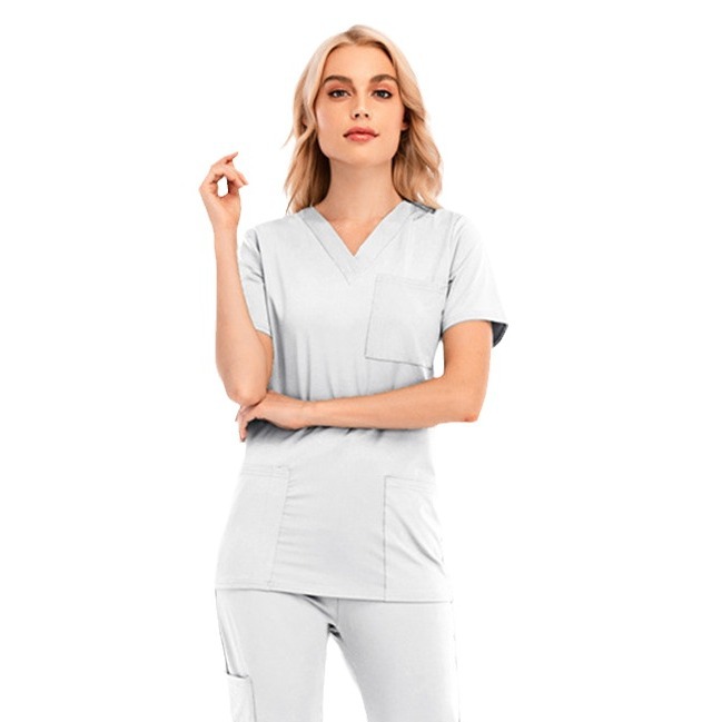 | nameOriginal | Summer polyester cotton V-neck pocket work nurse clothes short sleeve female operating room brush hand clothes Oral and Dental work uniform |