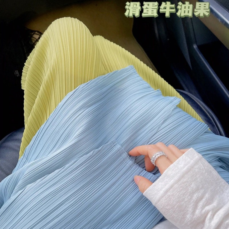 Summer Pregnant Women’s Pants Chiffon Ice Silk Straight Pants Wearing Wide Leg Pleated Cool Pants Thin Cropped Pants