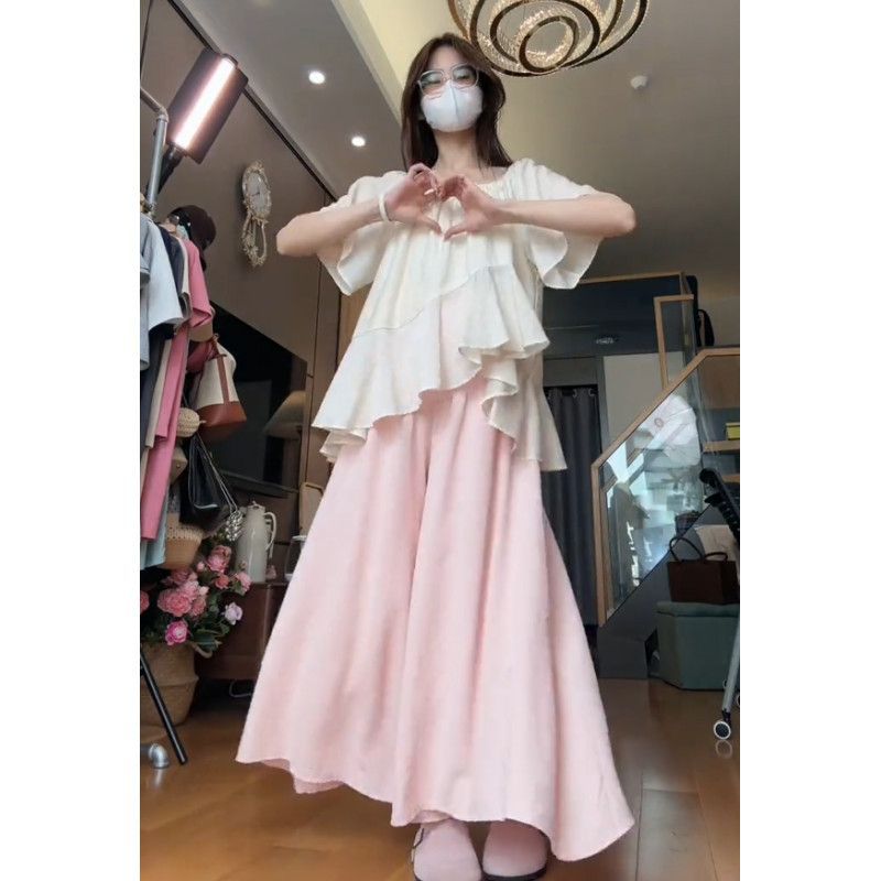 | nameOriginal | Summer Pregnant Women's Two-Piece Lazy Style Solid Color Irregular Short-Sleeved Top Belly Pants Skirt Slimming All-Match 2024 Women |