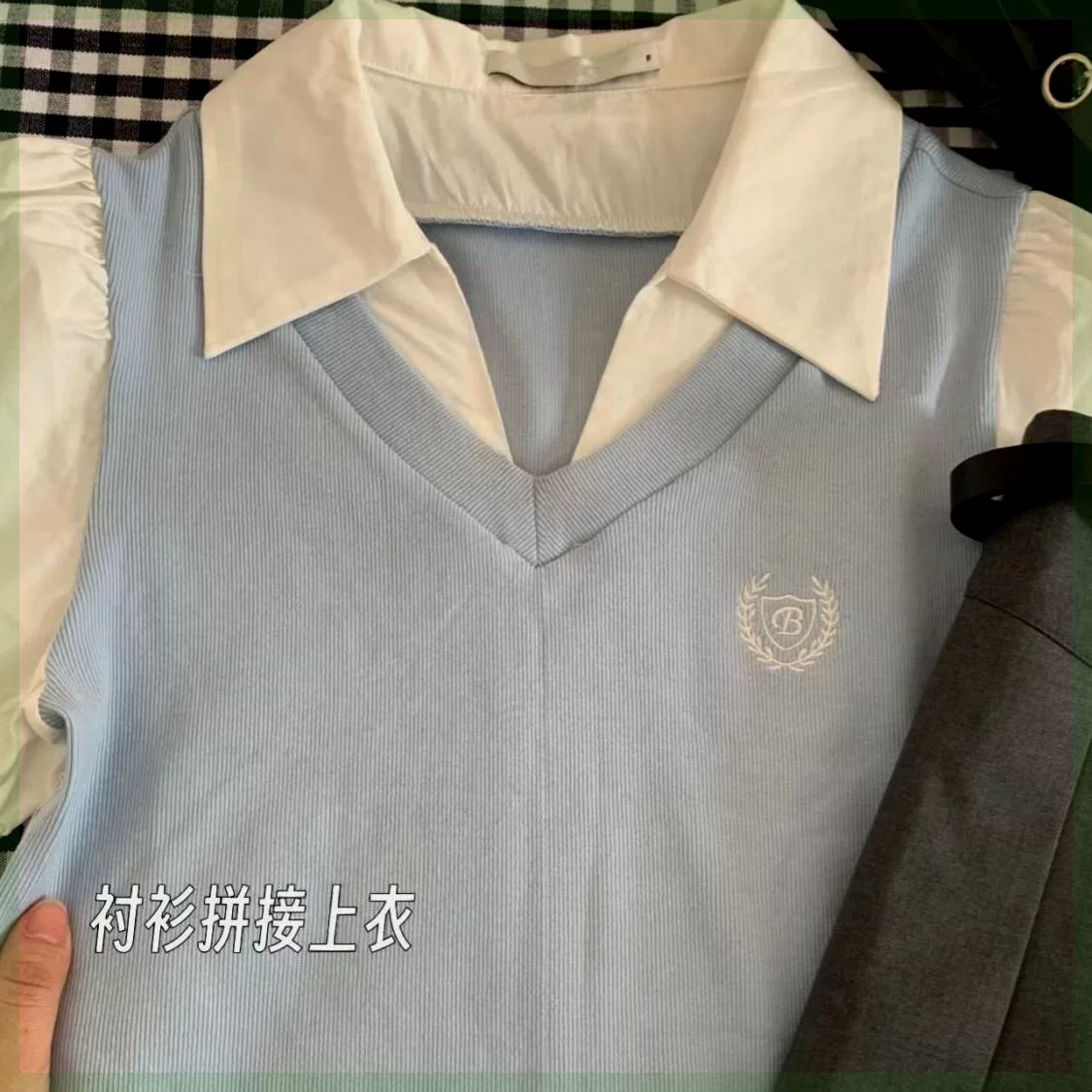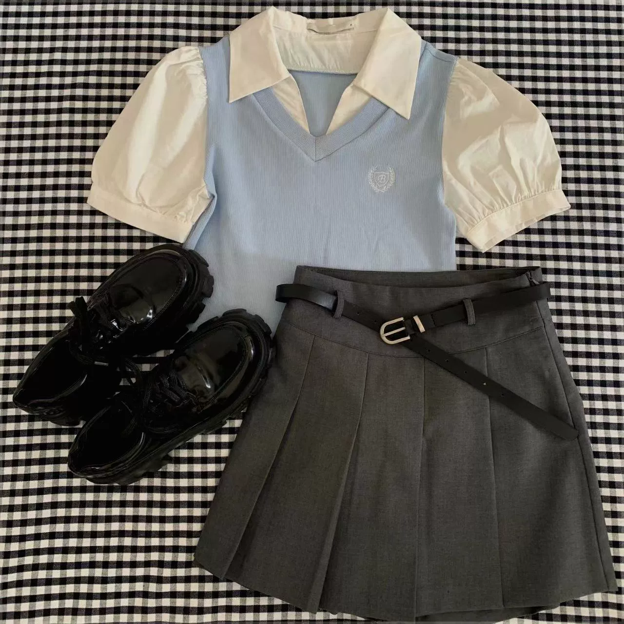 | nameOriginal | Summer preppy short-sleeved shirt pleated skirt fake two-piece |
