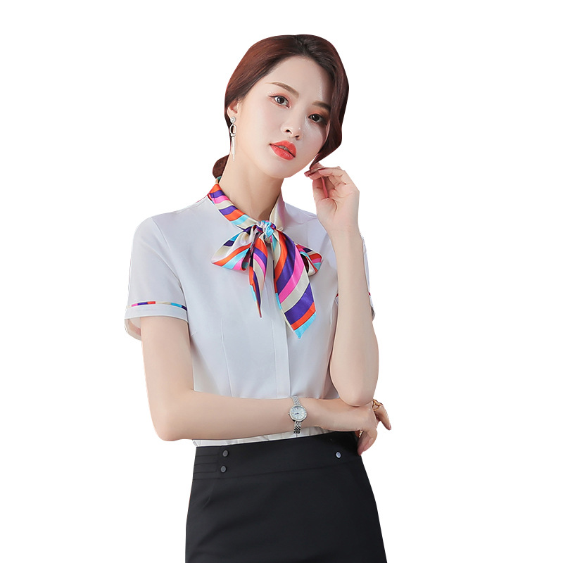 | nameOriginal | Summer professional white shirt female embroidered logo female short sleeve shirt white collar work clothes |