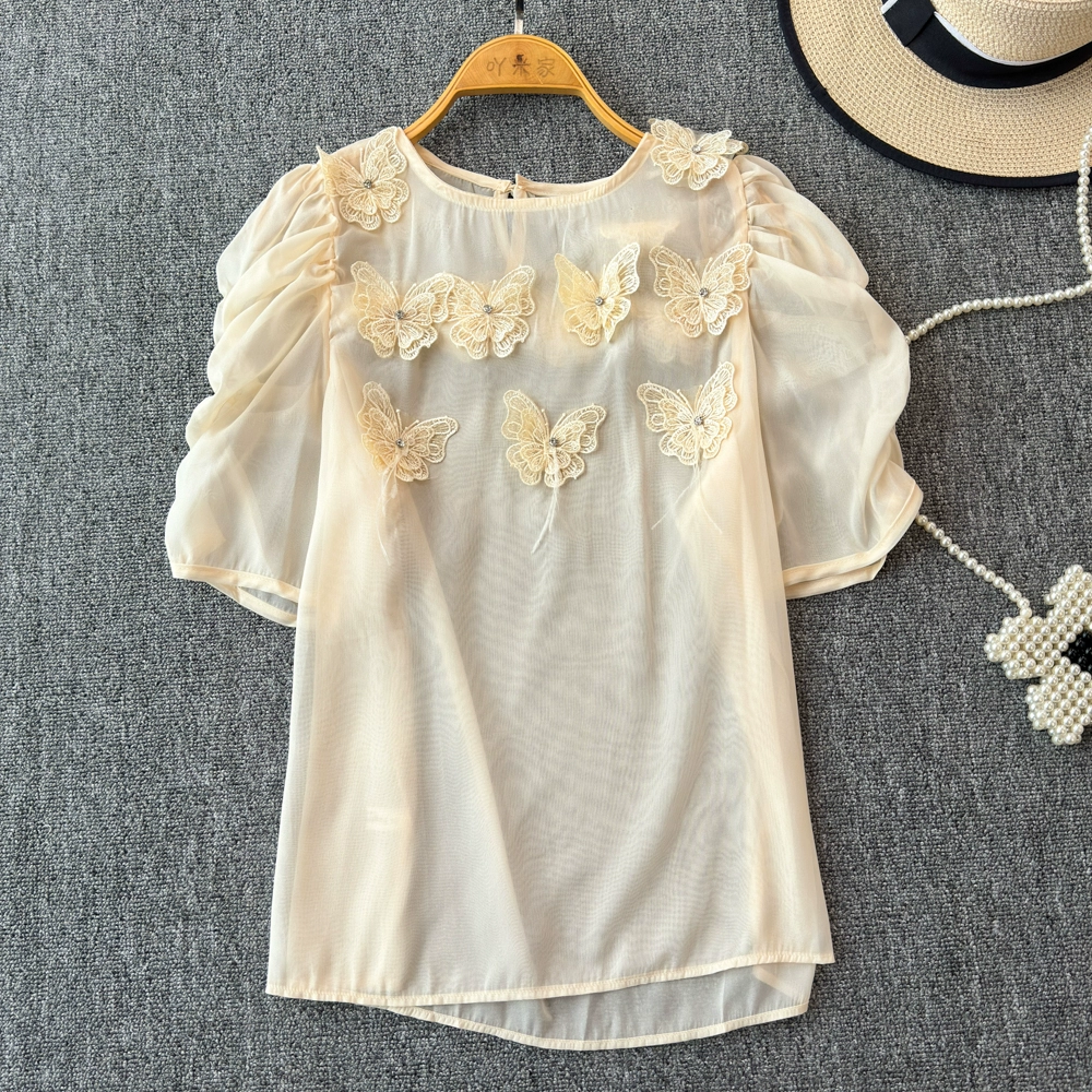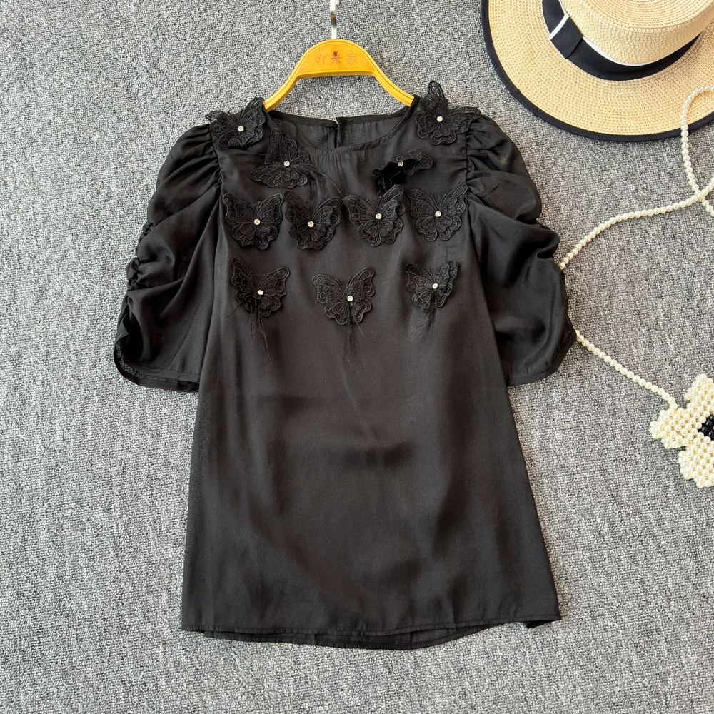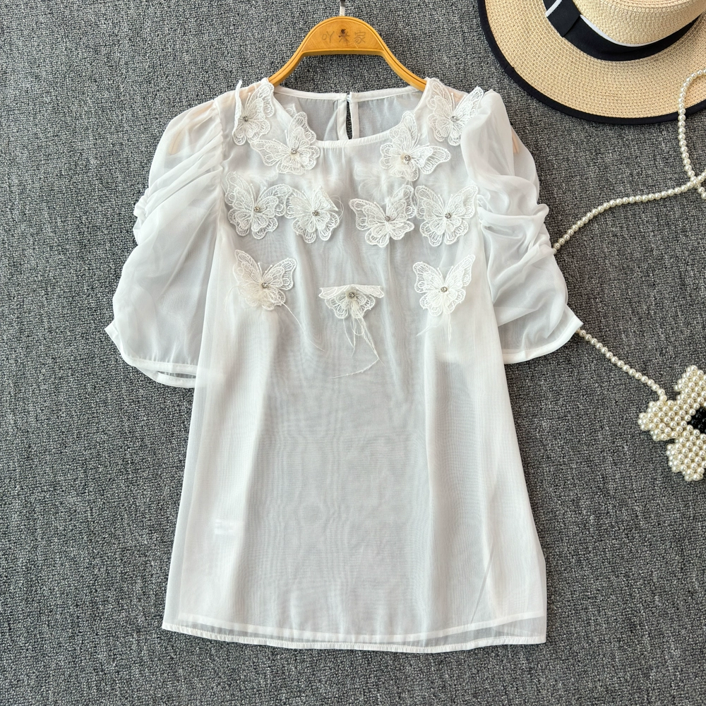 | nameOriginal | Summer puff sleeve chiffon shirt women's summer wear 2024 new age-reducing three-dimensional butterfly shirt short-sleeved shirt |