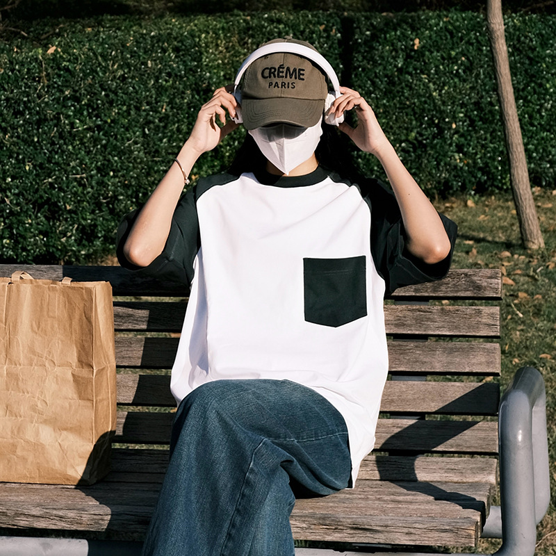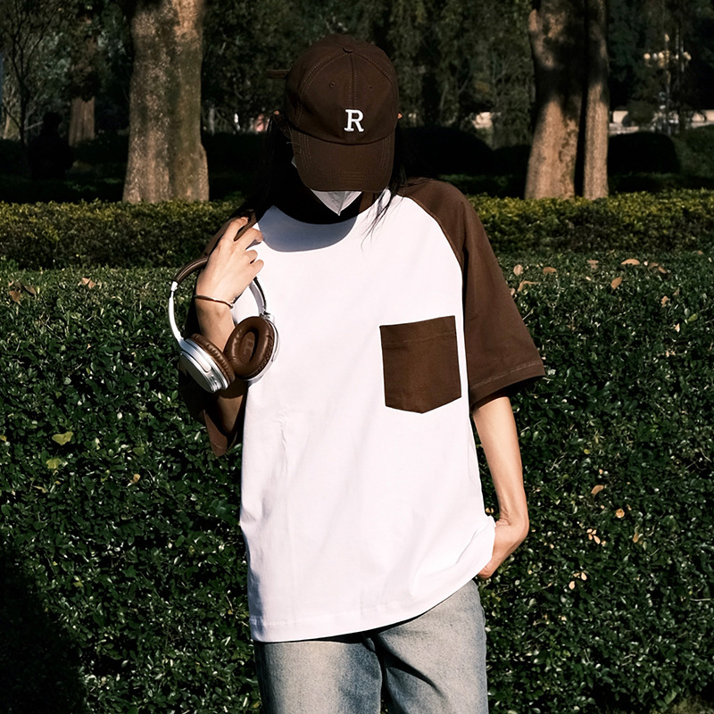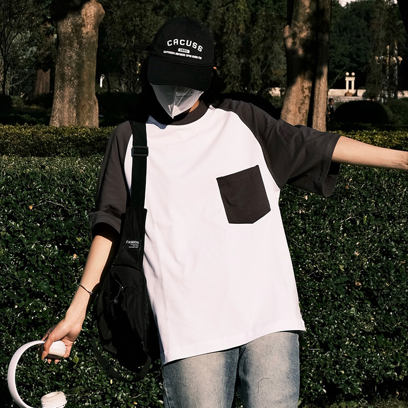 Summer Pure Cotton Contrast Color Raglan Short-sleeved Base Shirt Women’s Korean-style Slimming Academy-style All-match Round Neck T-shirt Top Clothes