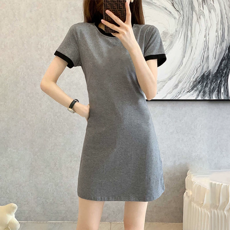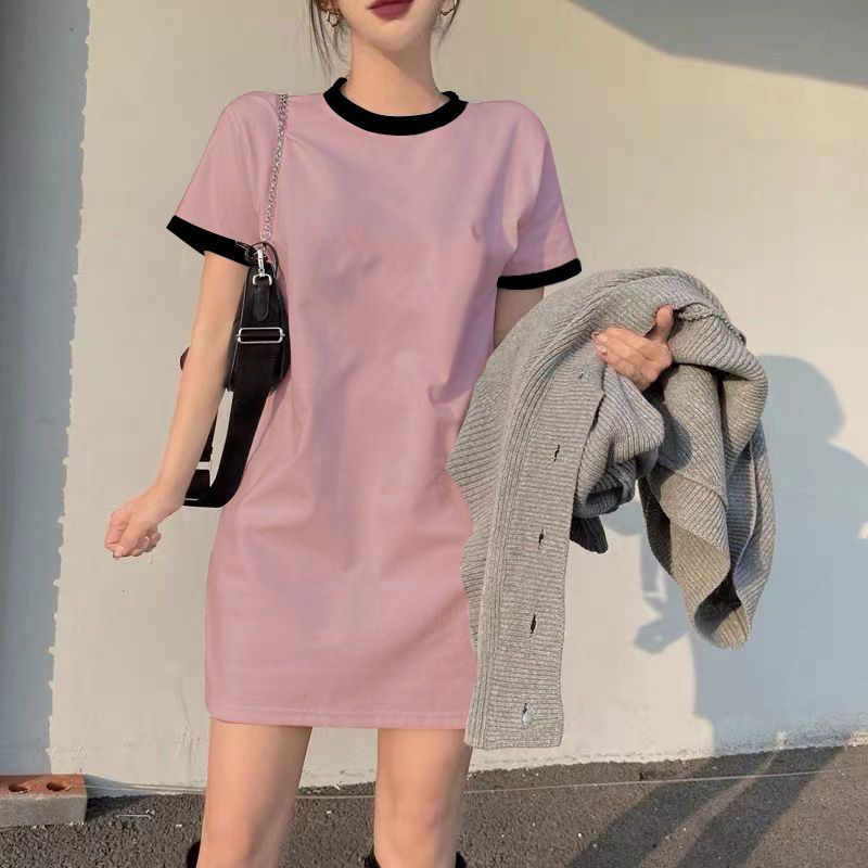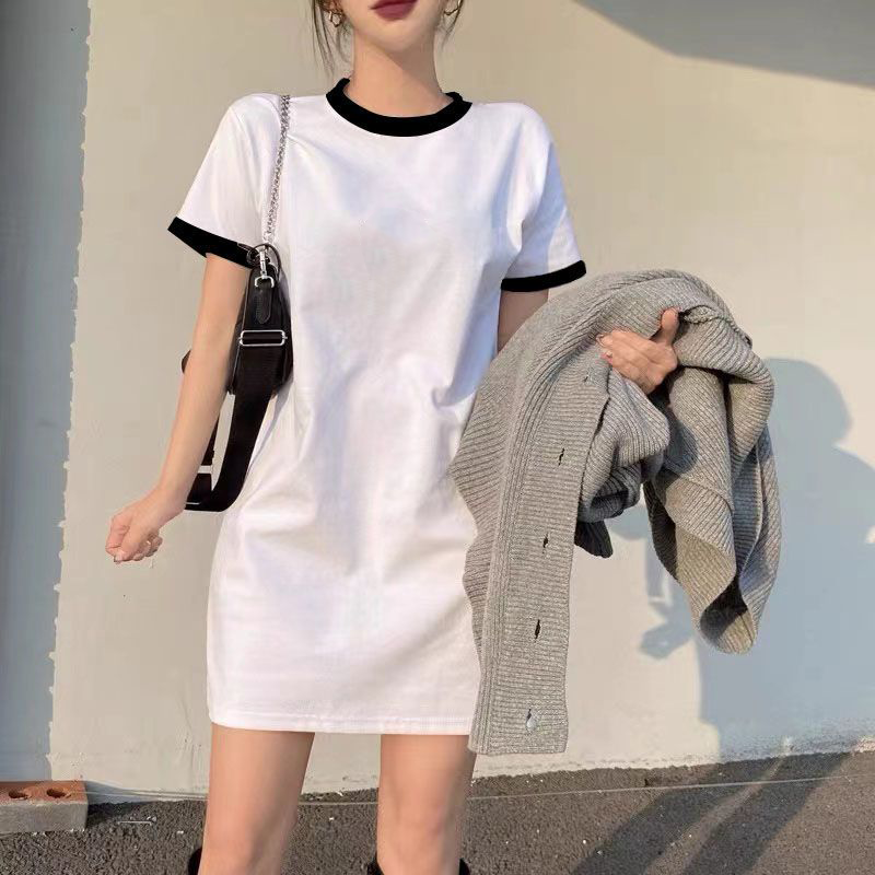 Summer pure cotton dress with loose short sleeves worn inside and outside