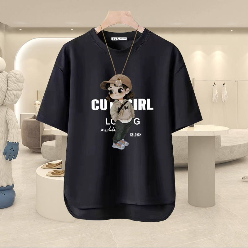 | nameOriginal | Summer pure cotton loose round neck right shoulder short sleeve t-shirt |