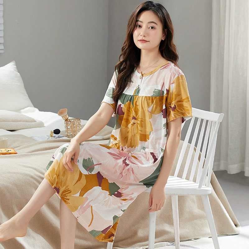Summer pure cotton middle-aged mother's casual plus size nightgown