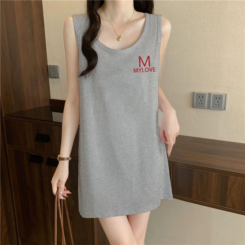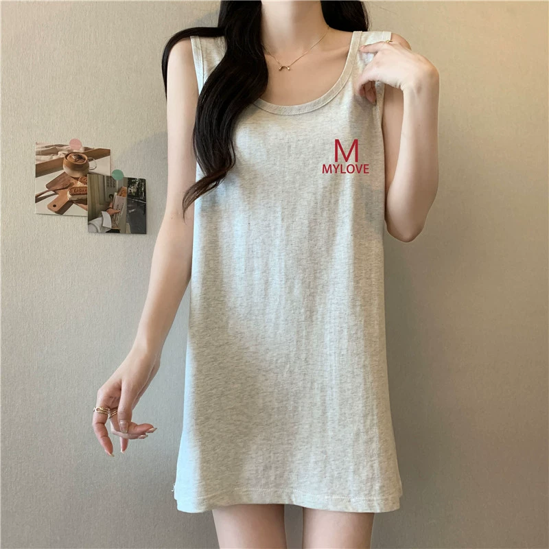 | nameOriginal | Summer pure cotton nightgown pink simple can be worn outside loose home clothes sexy sleeveless vest pure cotton pure desire pajamas |