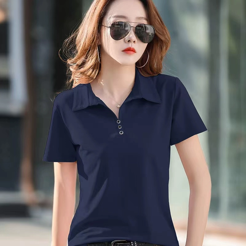 Summer pure cotton short-sleeved lapel top new fashion mother’s outfit casual sports versatile large-size striped T-shirt for women
