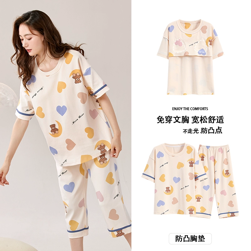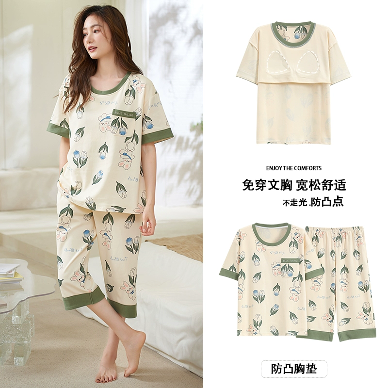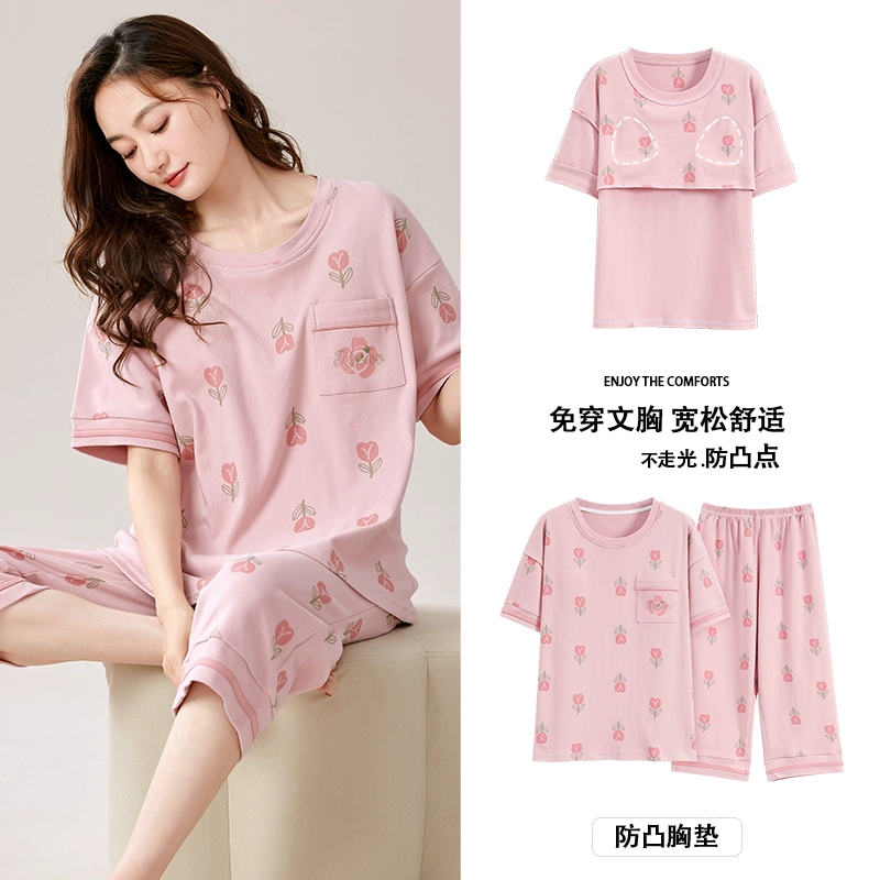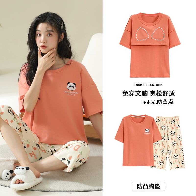 | nameOriginal | Summer pure cotton short-sleeved pajamas for women, Korean version for fat girls, loose and wearable with chest pads, home casual wear set |