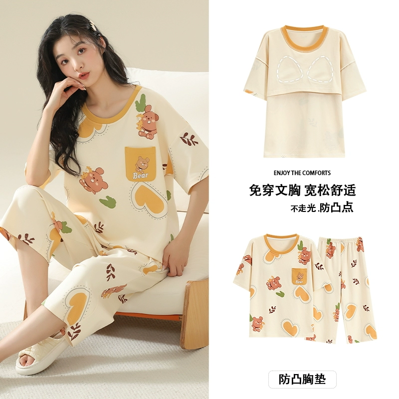 | nameOriginal | Summer pure cotton short-sleeved pajamas for women, Korean version for fat girls, loose and wearable with chest pads, home casual wear set |