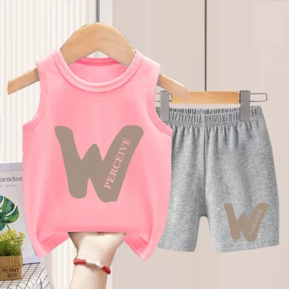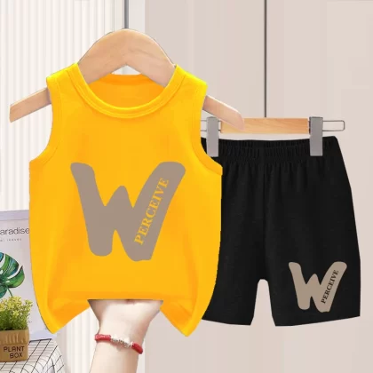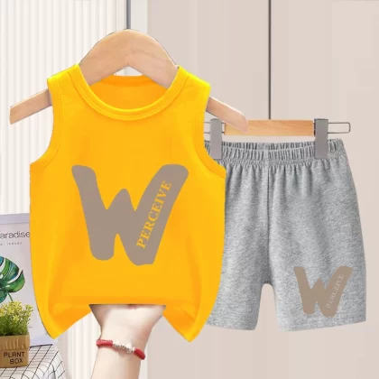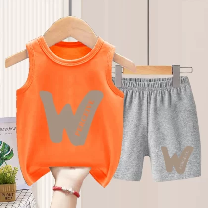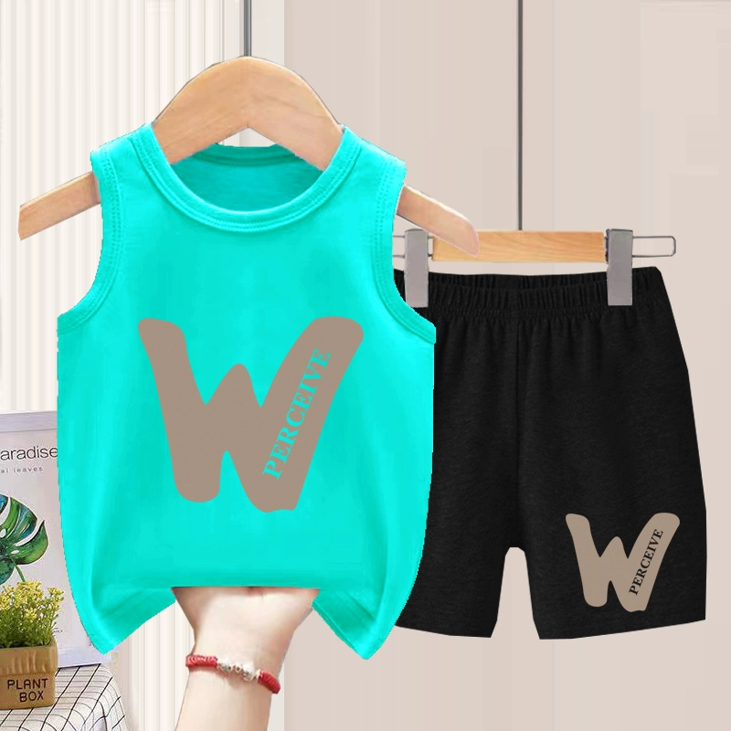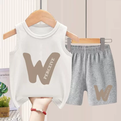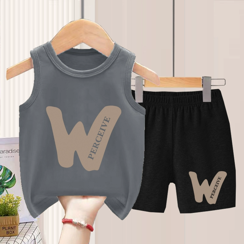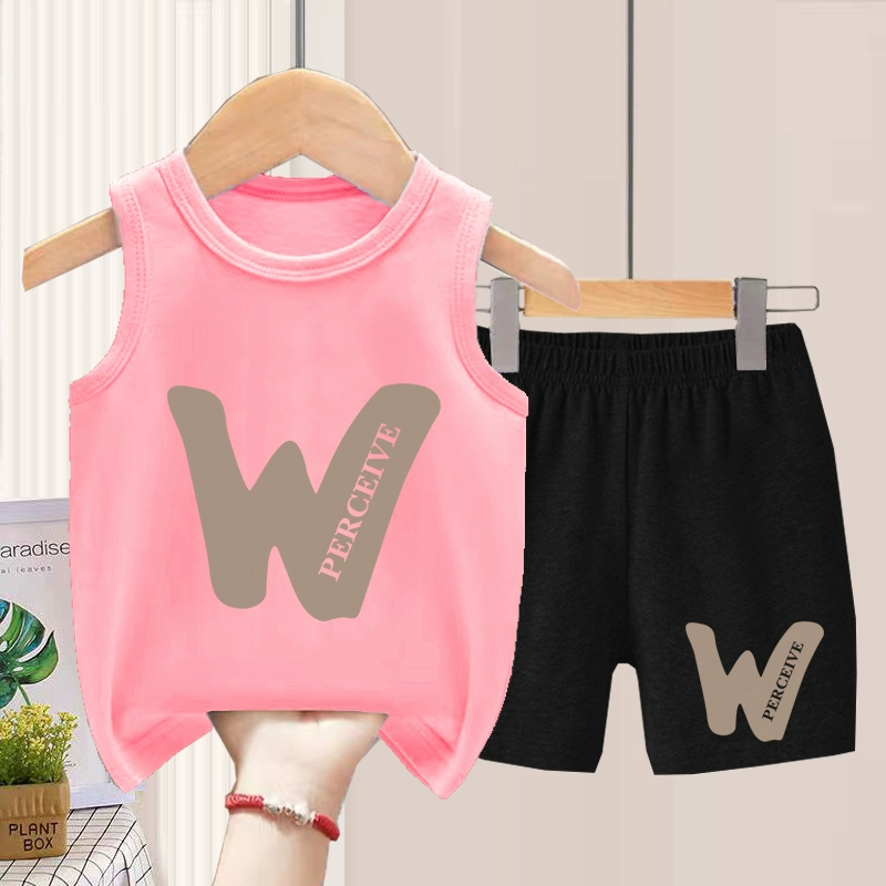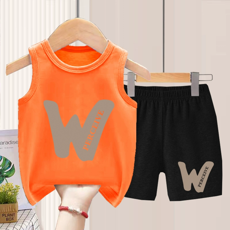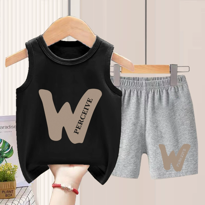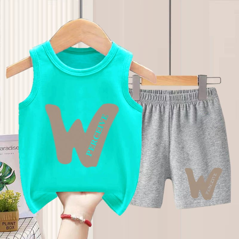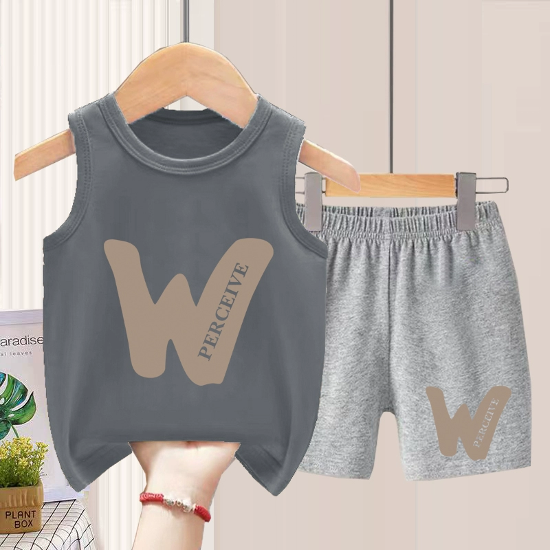 Summer pure cotton sports shorts sleeveless vest for boys and girls