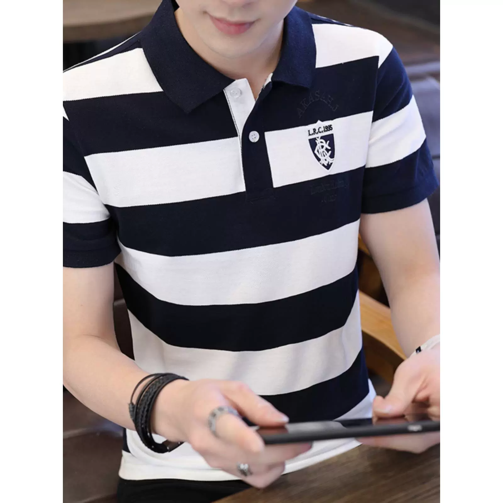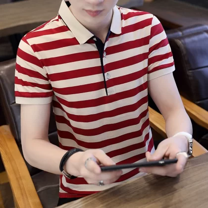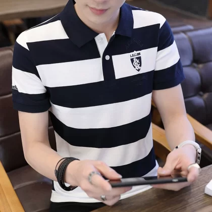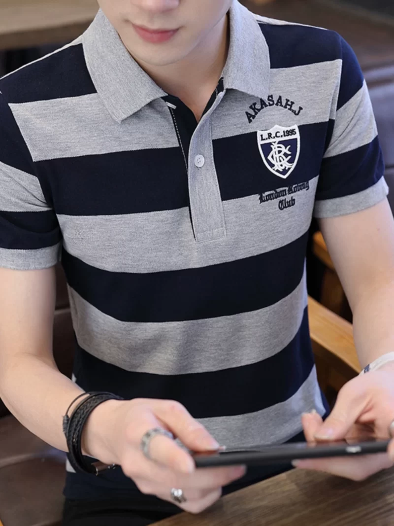 nameOriginal | Summer pure cotton striped polo shirt men's brand thin lapel short-sleeved T-shirt new slim business casual half-sleeve |