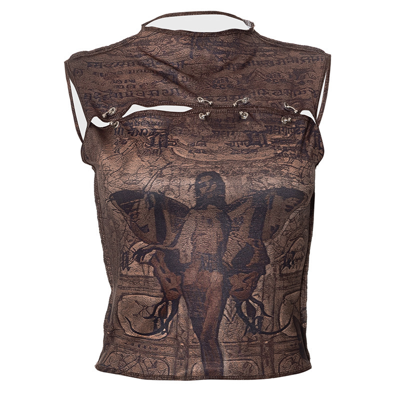 | nameOriginal | Summer R22TP138 New 2022 Round Neck Pullover Sleeveless Printed Hollow Navel European and American Women's Top Vest |
