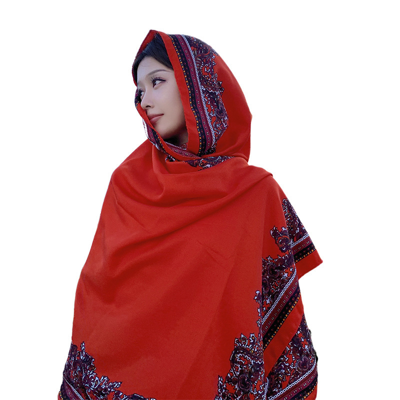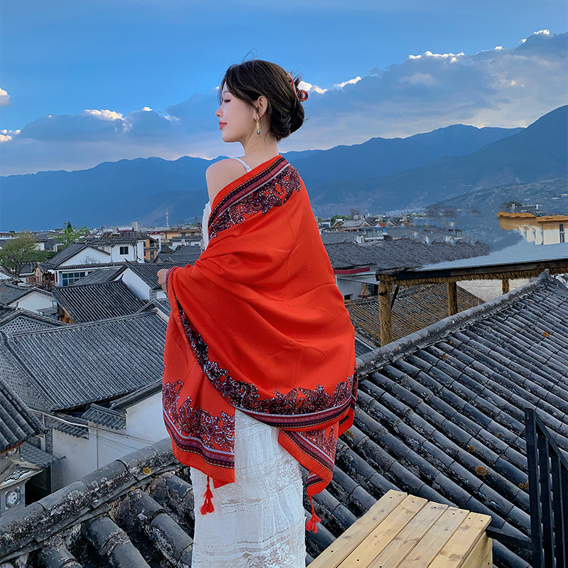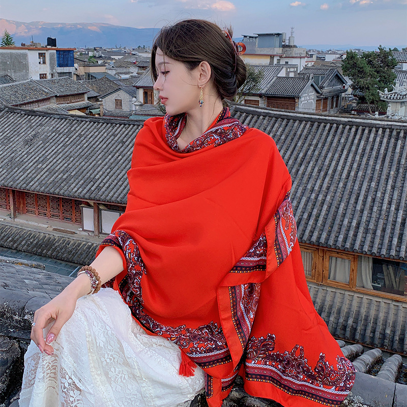Summer Red Cotton and Linen Scarf Dual-use Ethnic Style Large Shawl All-match Western Style Thin Sunscreen Silk Scarf Beach Towel