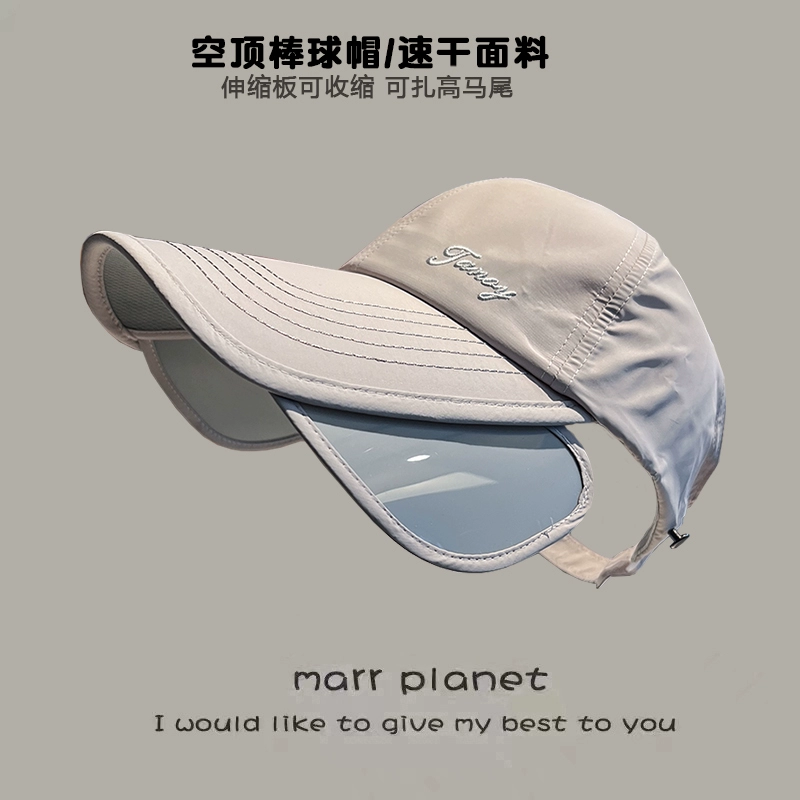 | nameOriginal | Summer retractable board wide brim sun hat for men and women outdoor full face empty top duck hat can be tied into a ponytail sun hat |