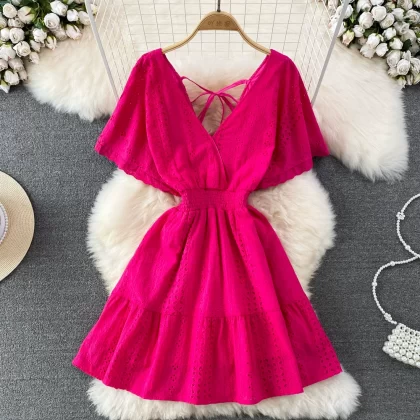 | nameOriginal | Summer retro backless large swing seaside vacation beach dress |