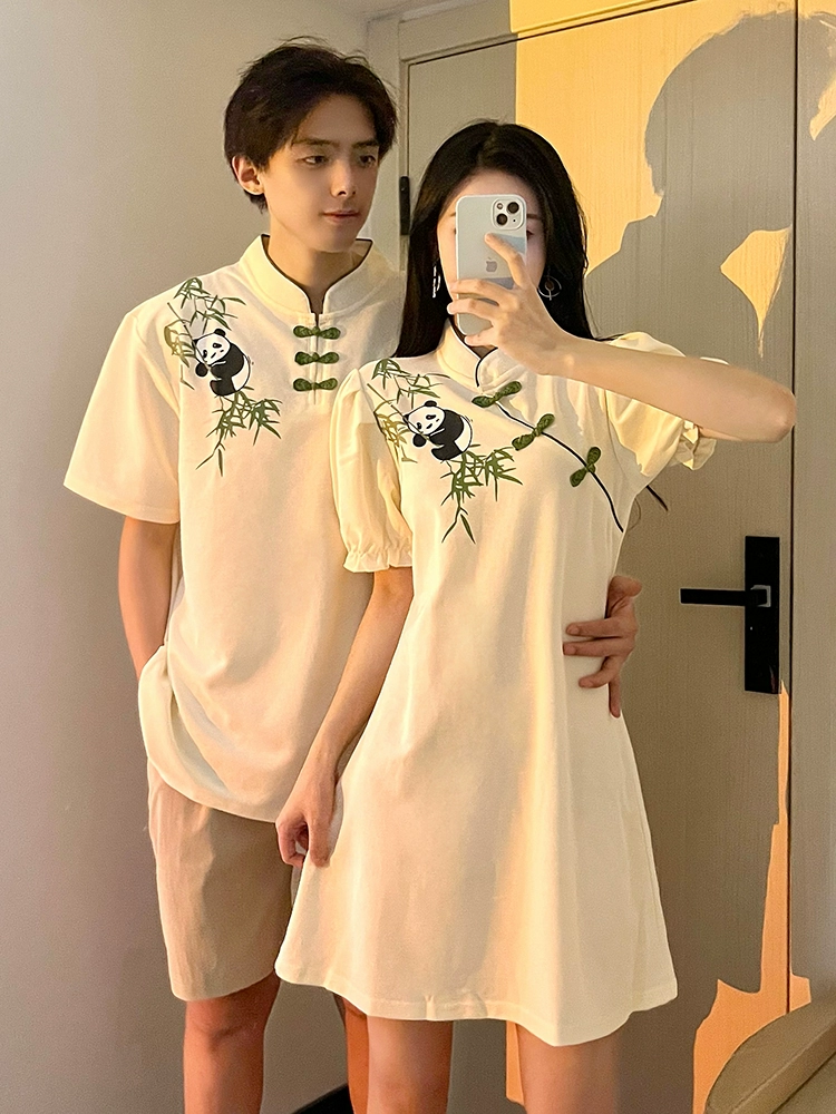 | nameOriginal | Summer retro buckle niche design couple outfit |