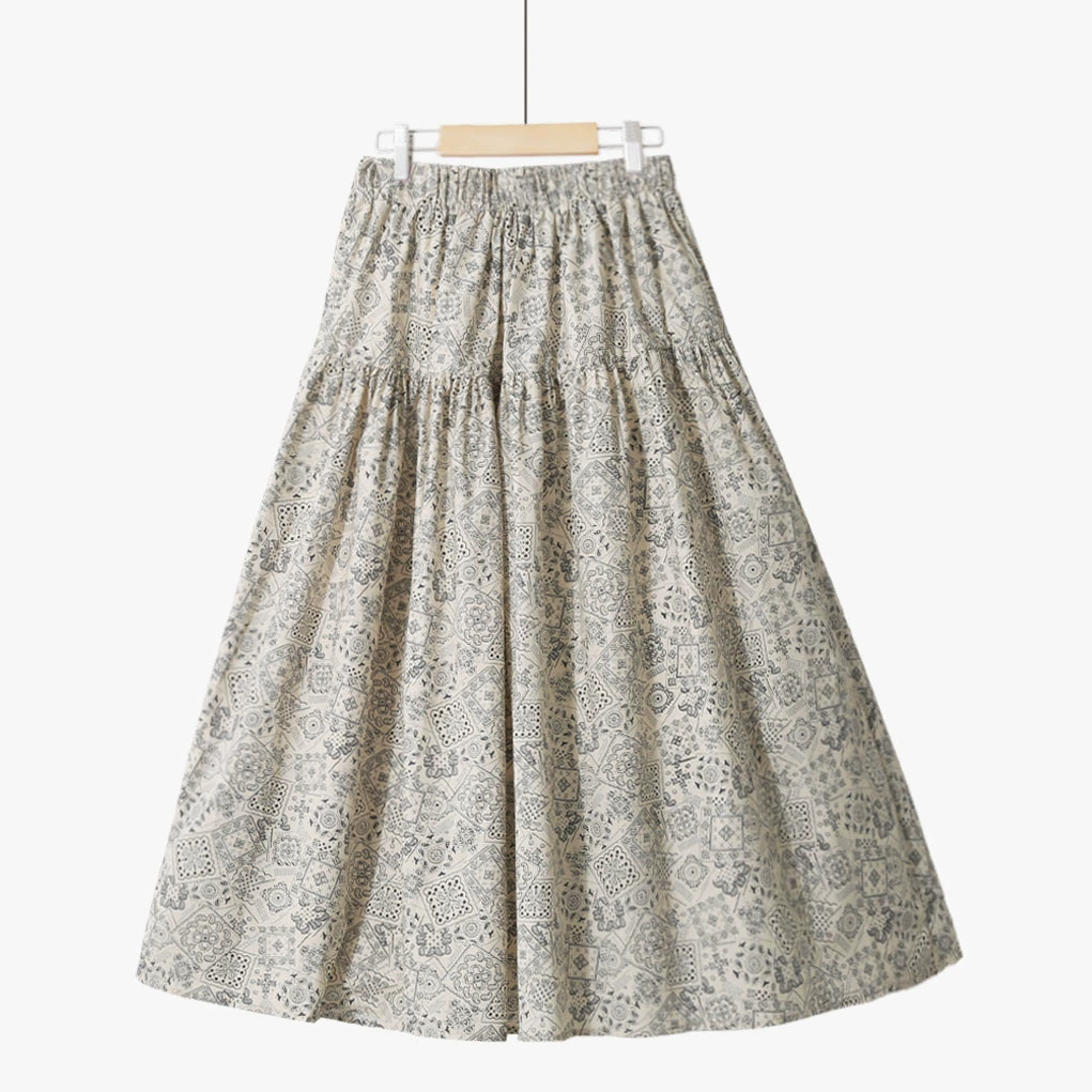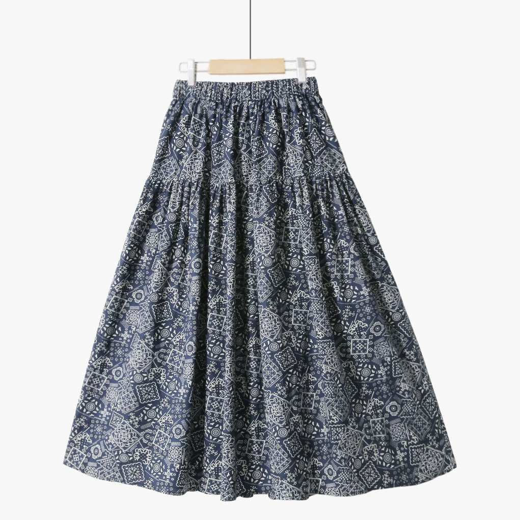 | nameOriginal | Summer retro cotton mid-length skirt with hemline |