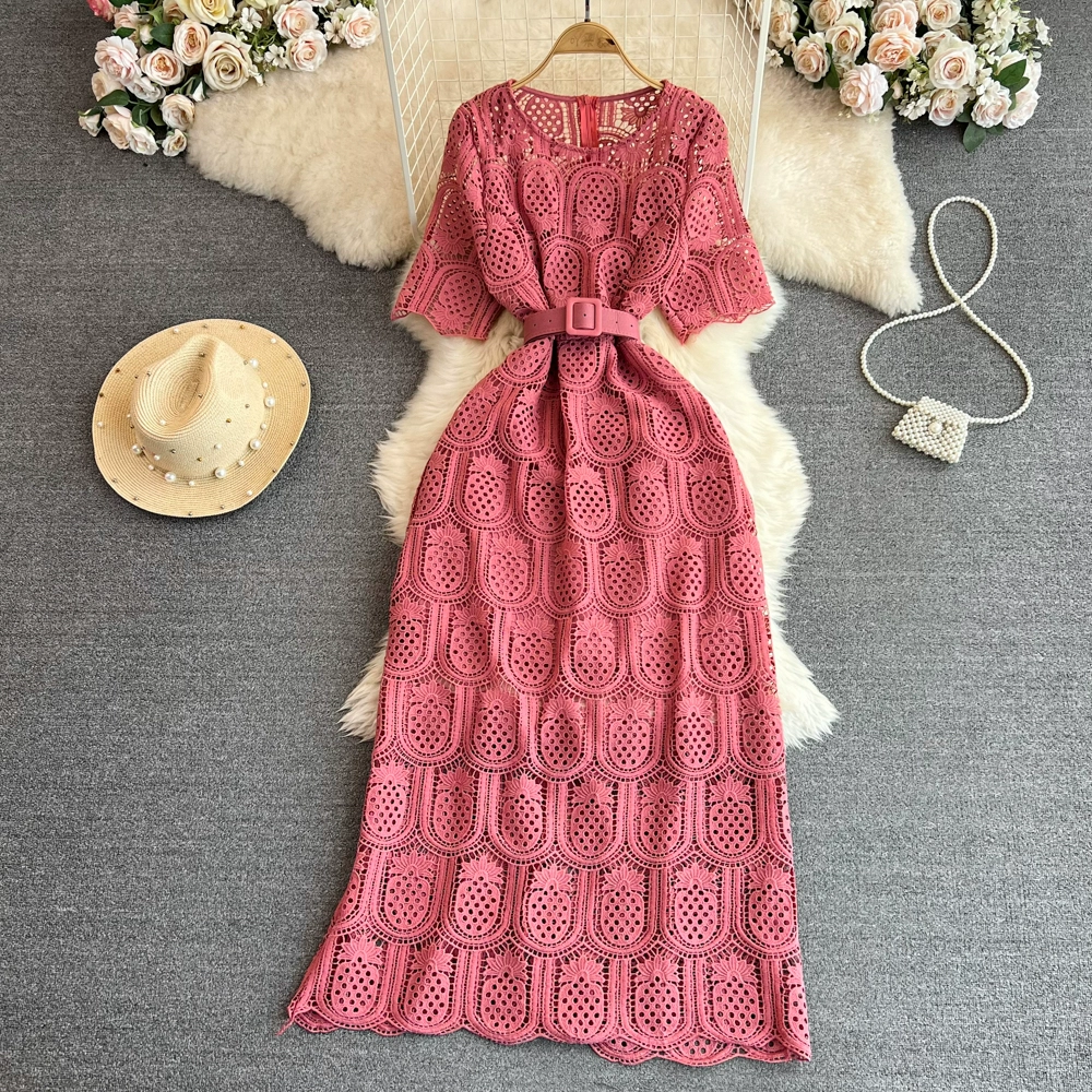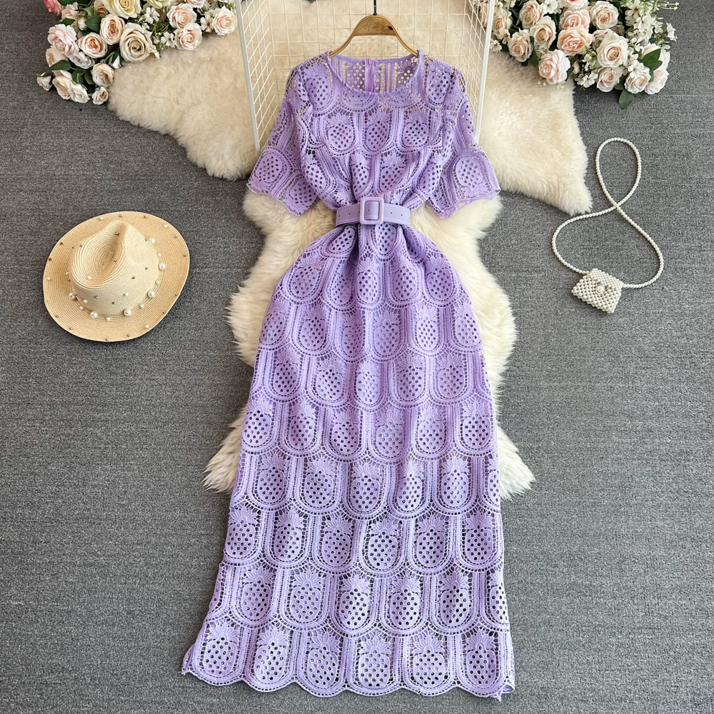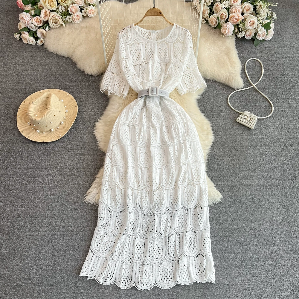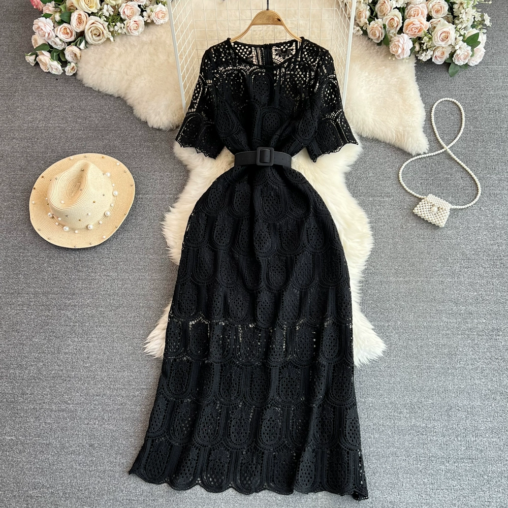 | nameOriginal | Summer retro hollow lace dress with elegant short sleeves |