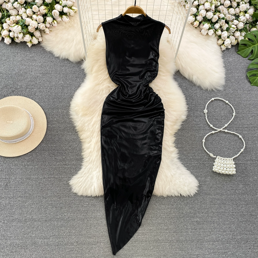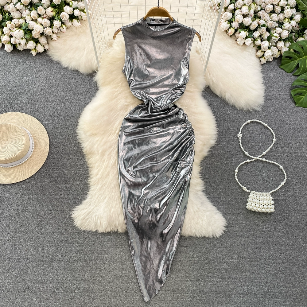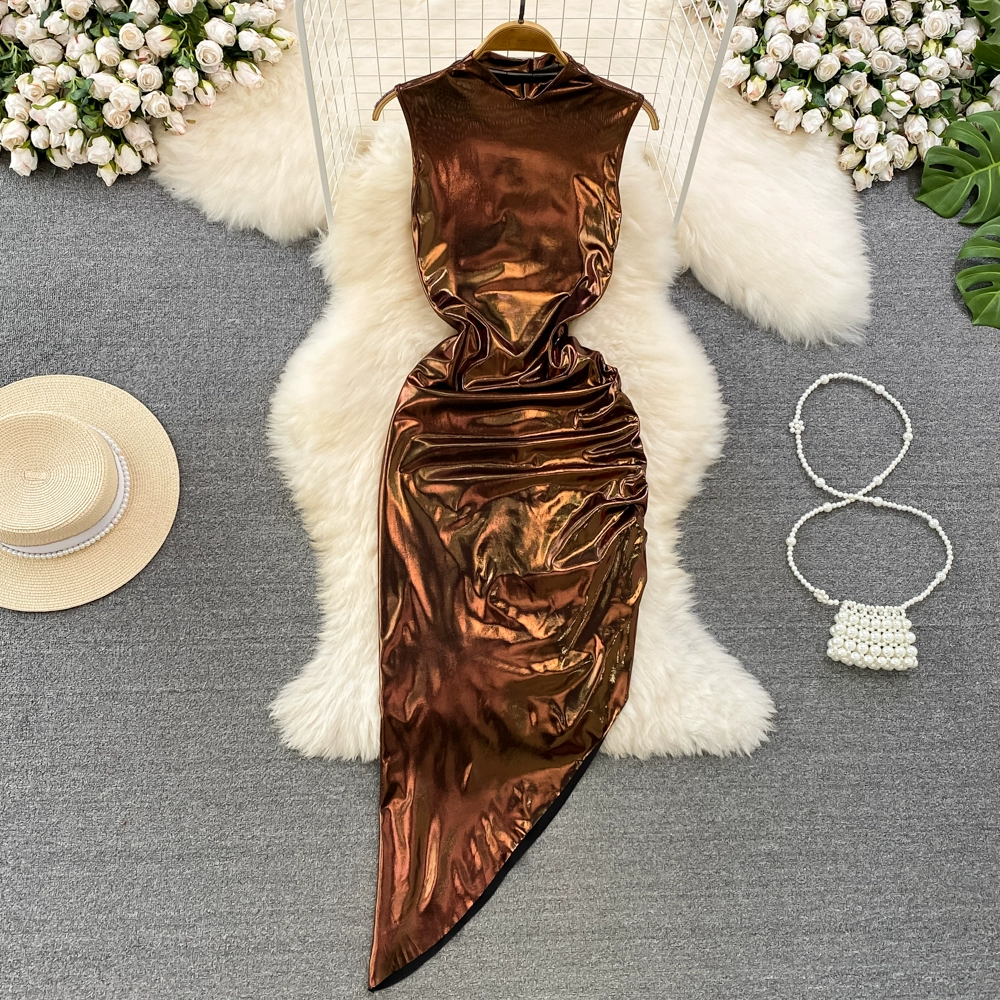 | nameOriginal | Summer retro stand-collar metallic irregular dress |