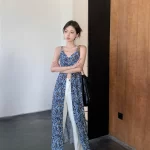 | nameOriginal | Summer retro style dress with slit V-neck suspender |