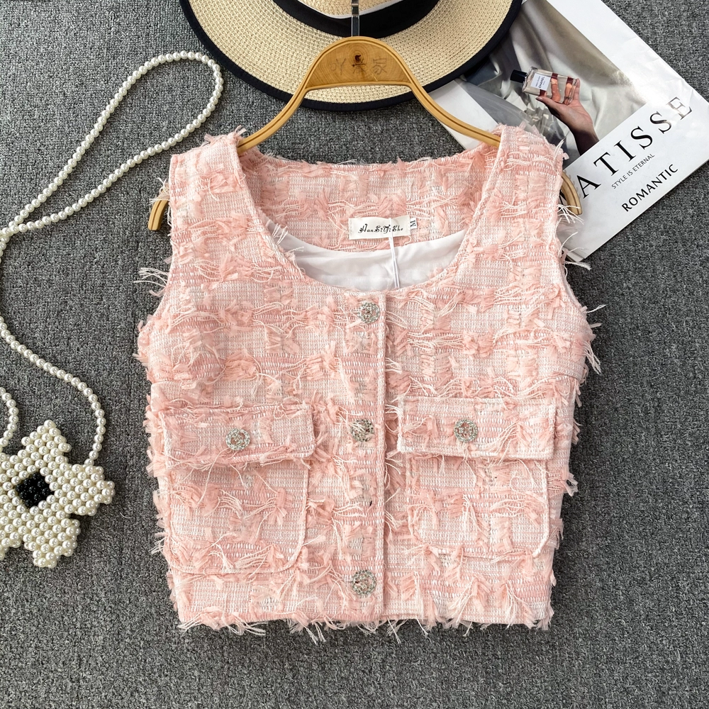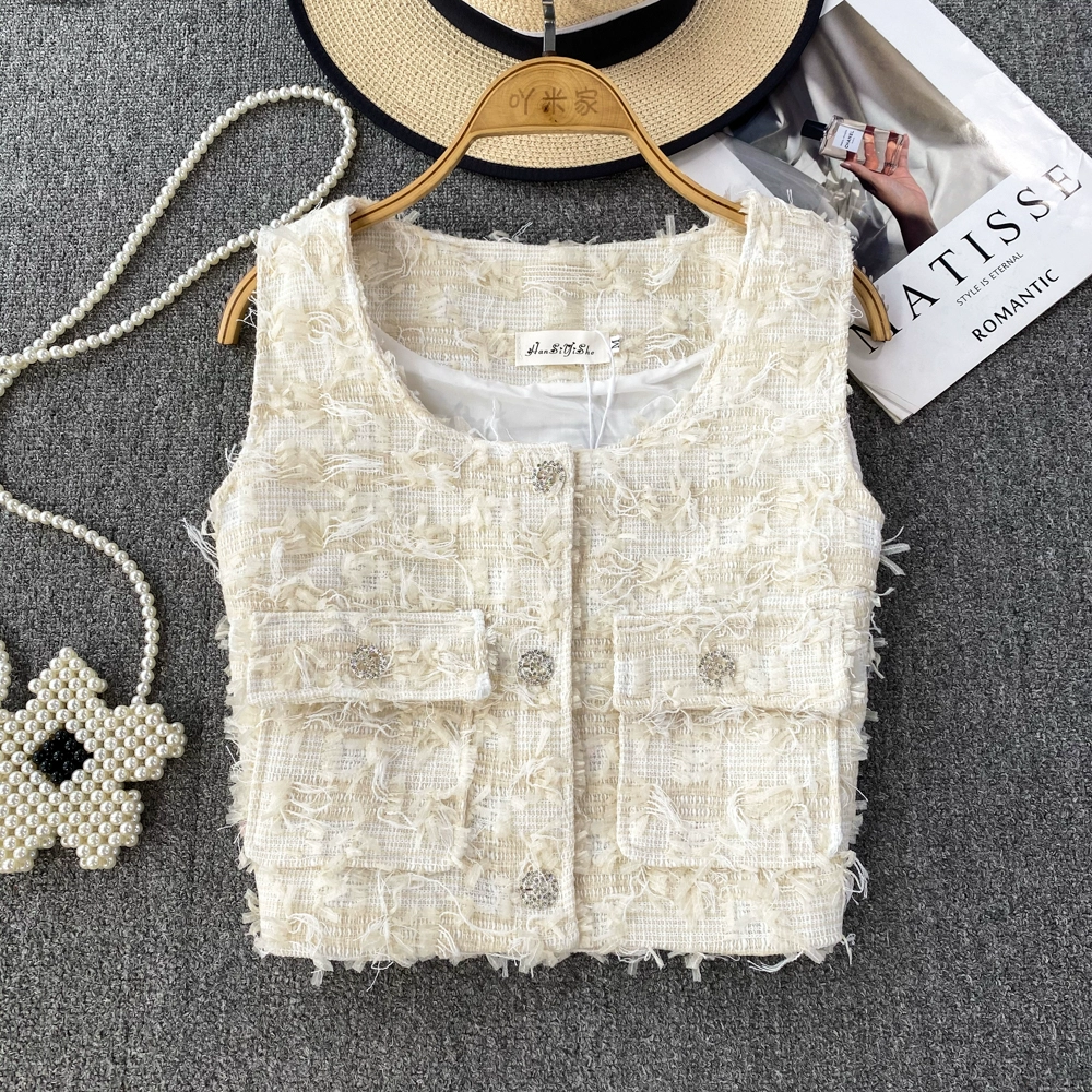 | nameOriginal | Summer retro temperament small fragrant tassel round neck single-breasted tweed vest jacket women's casual short top |