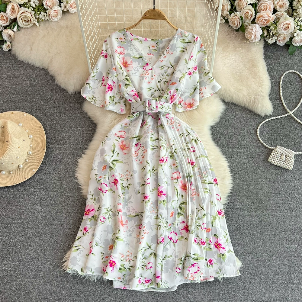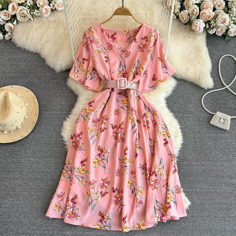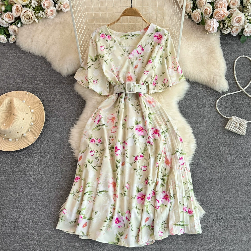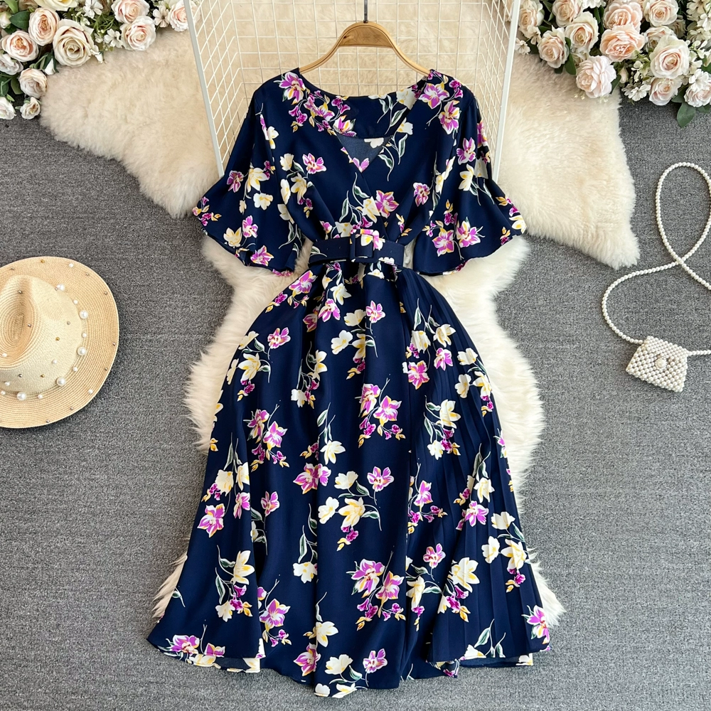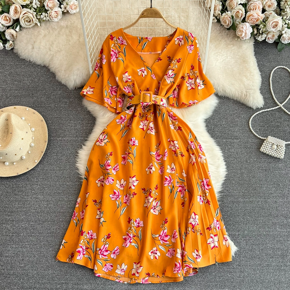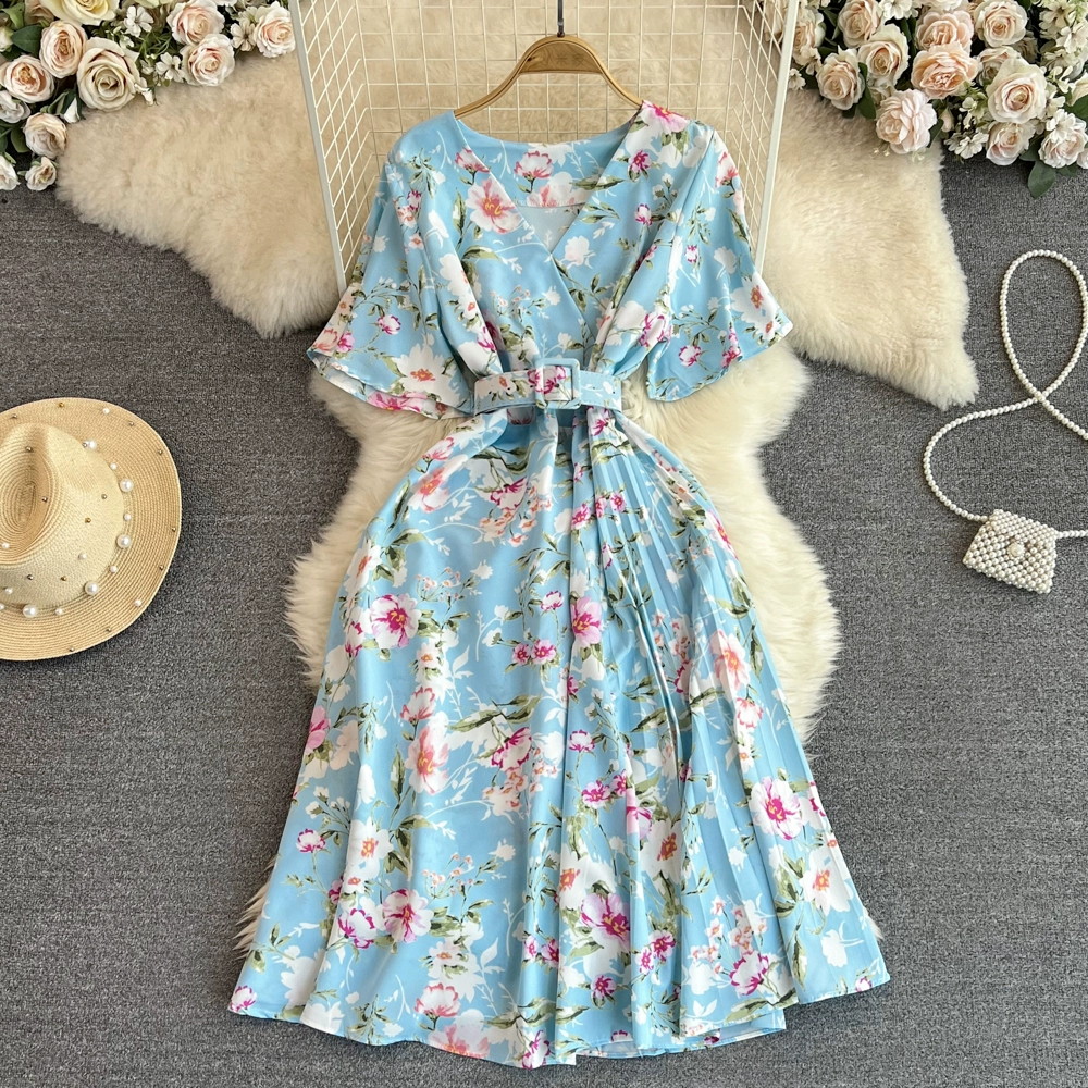 | nameOriginal | Summer retro V-neck a-line pleated dress short sleeves |