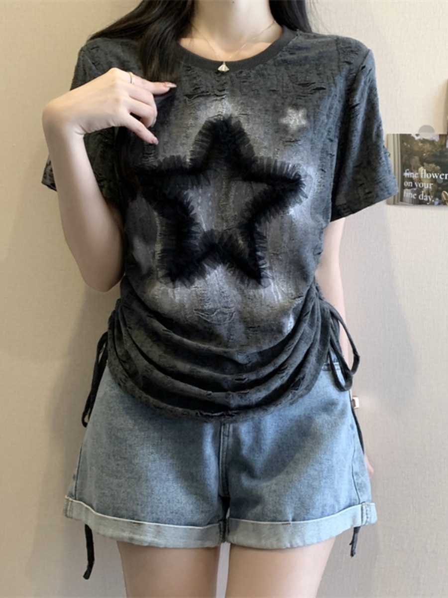 | nameOriginal | Summer right shoulder niche design printed short-sleeved T-shirt |