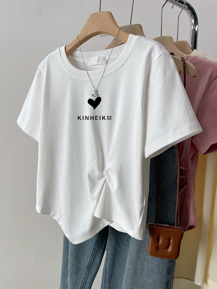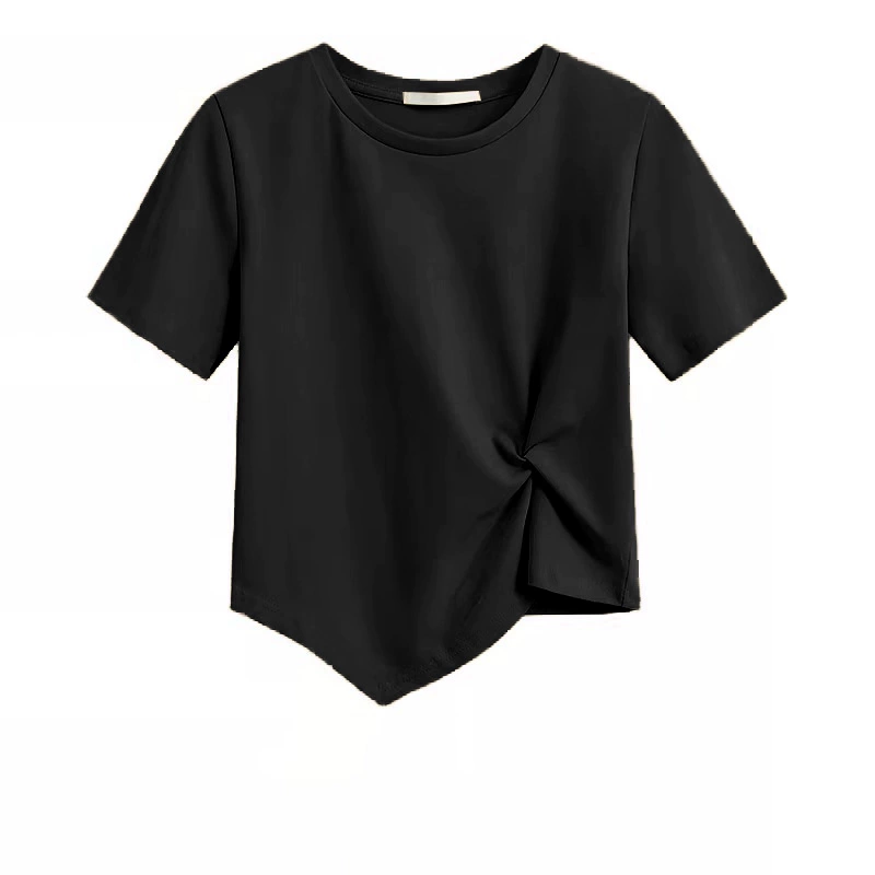 | nameOriginal | Summer right shoulder short sleeve pleated design top T-shirt |
