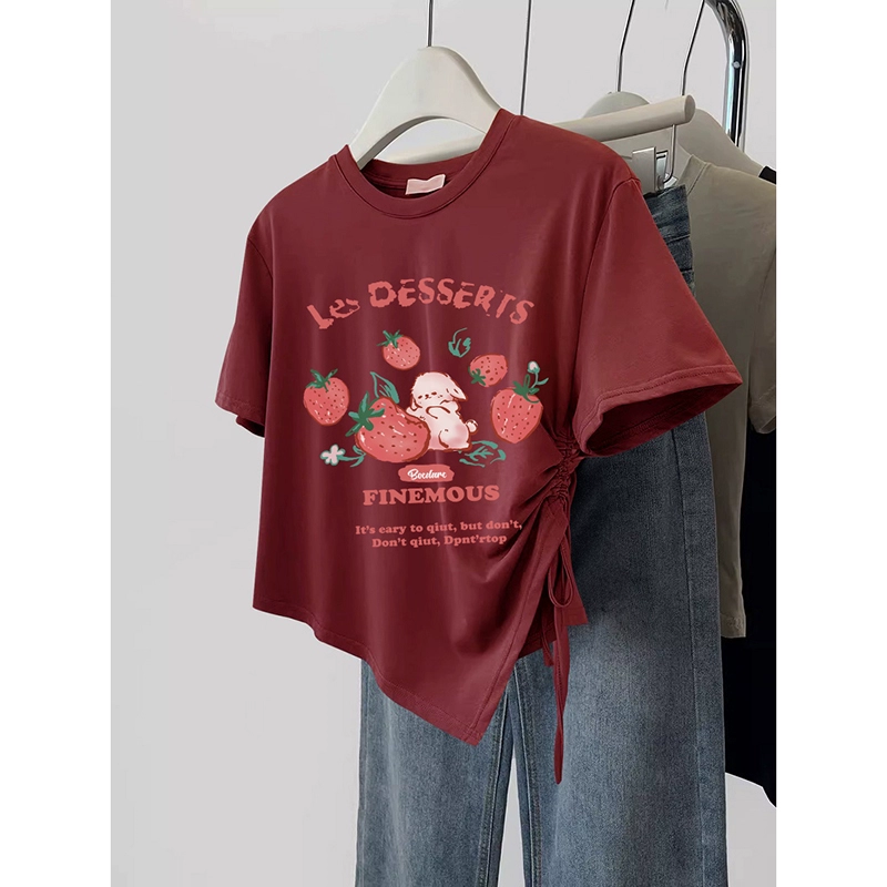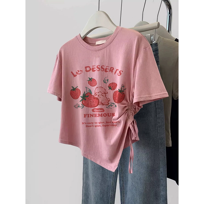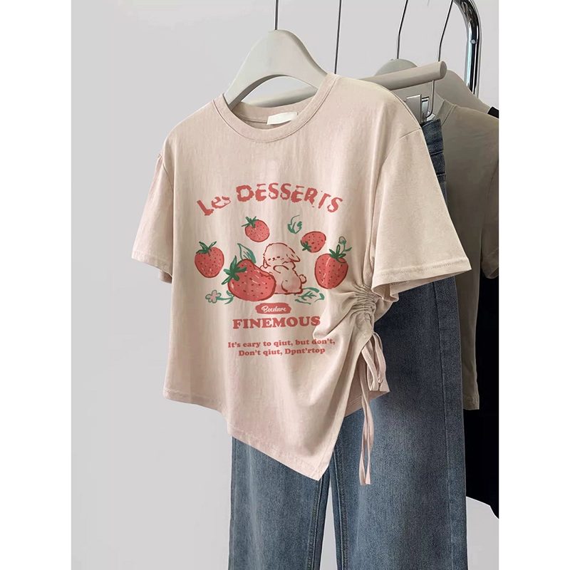 | nameOriginal | Summer right shoulder slim fit drawstring short sleeve t-shirt |