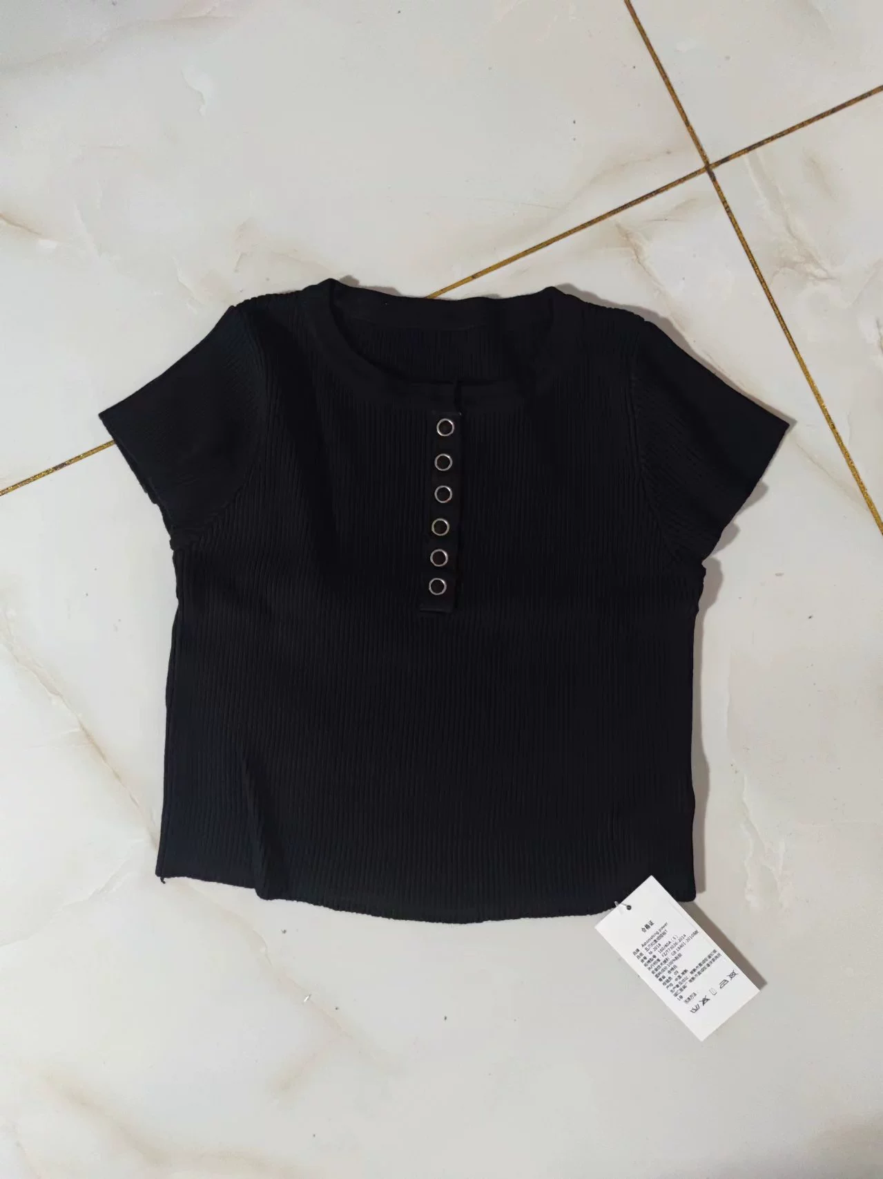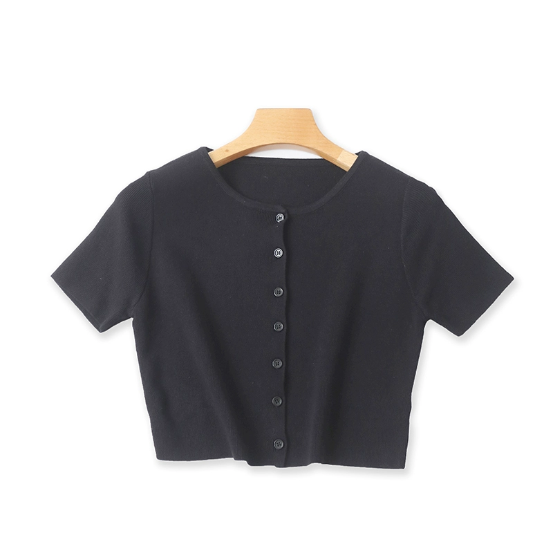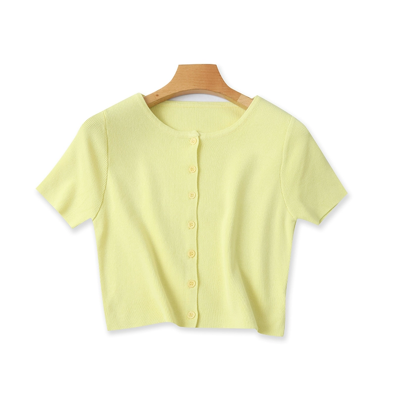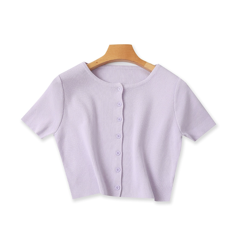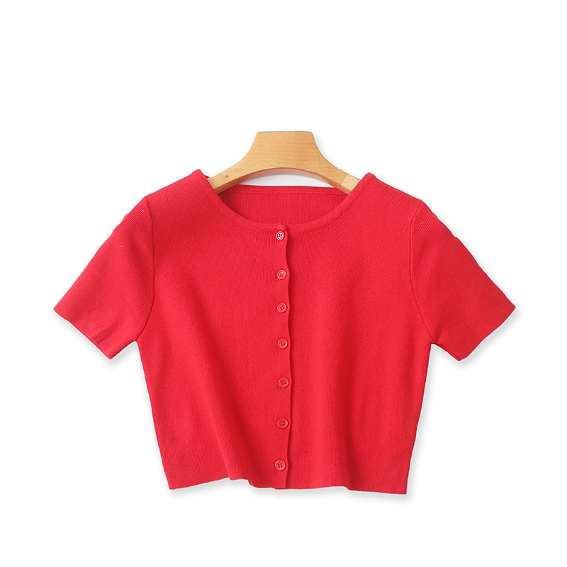 | nameOriginal | Summer round neck button candy color versatile T-shirt |