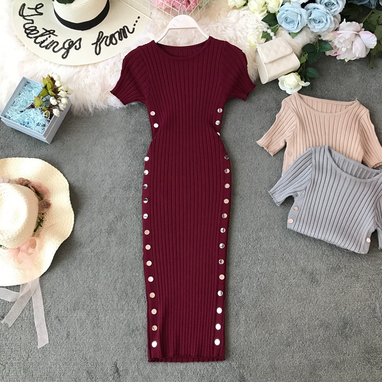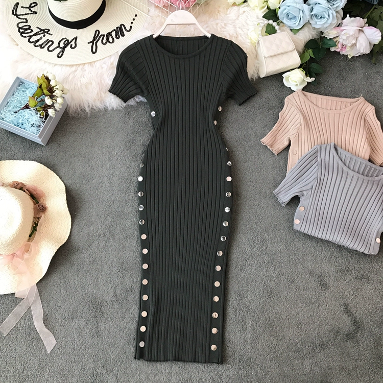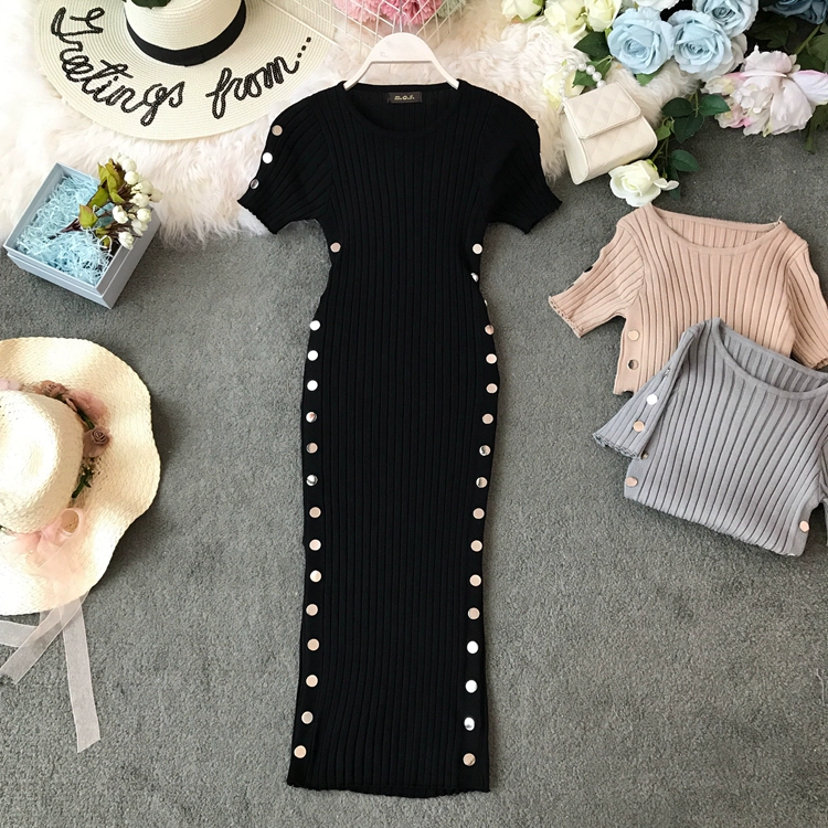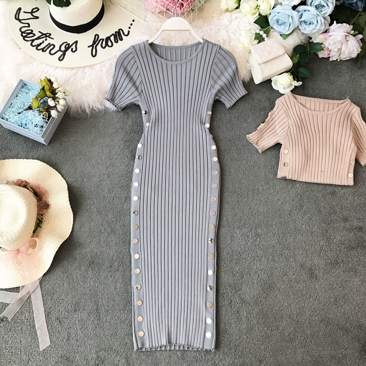 | nameOriginal | Summer round neck slim side double breasted knitted skirt |