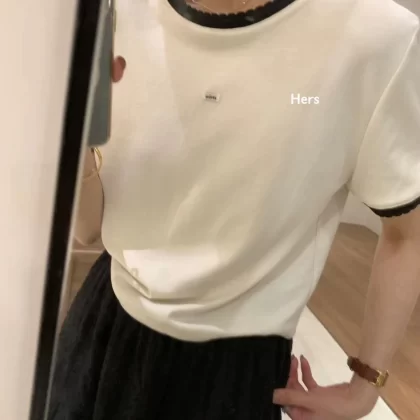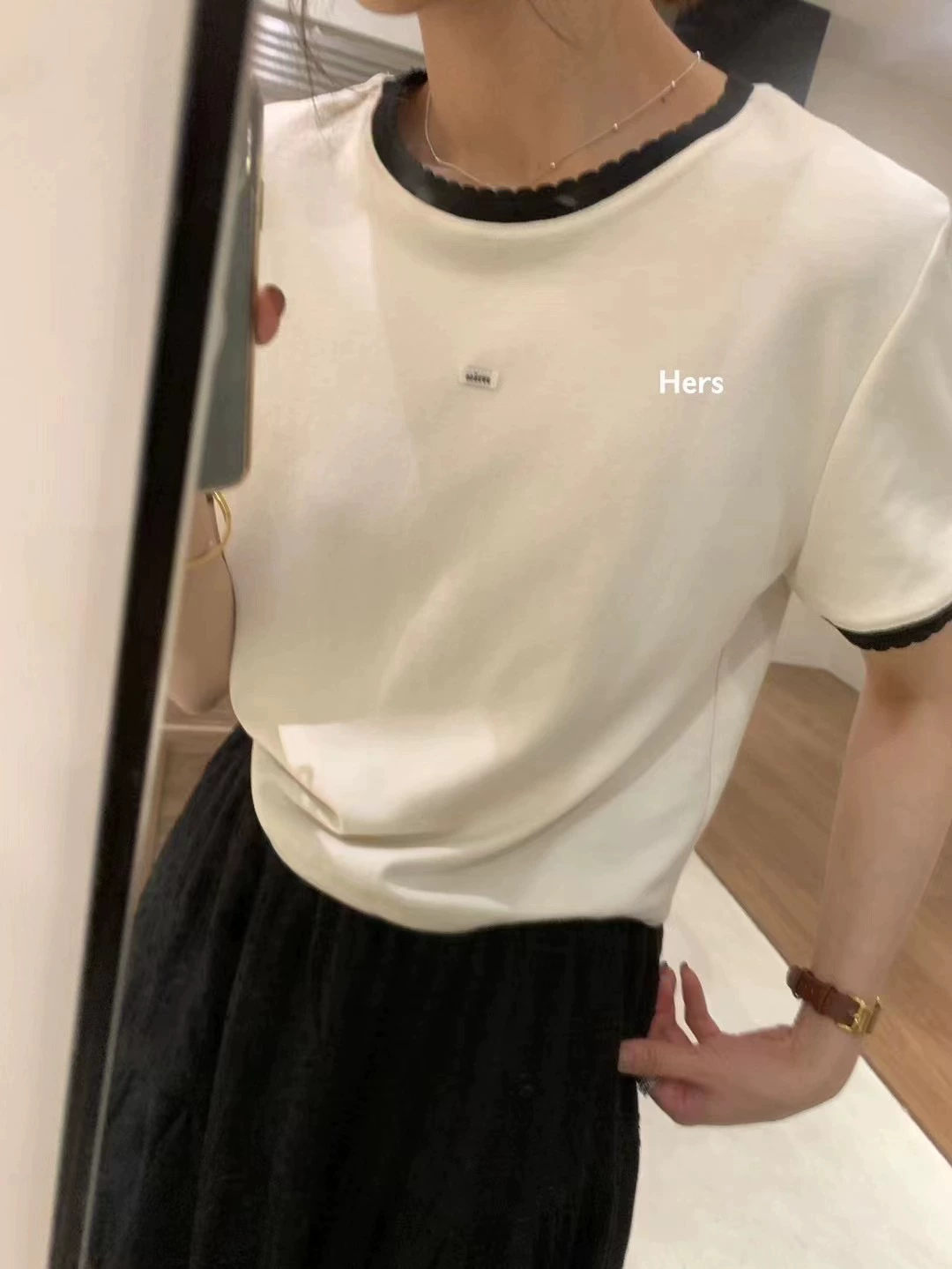 | nameOriginal | Summer round neck T-shirt casual splicing right shoulder ins lace |