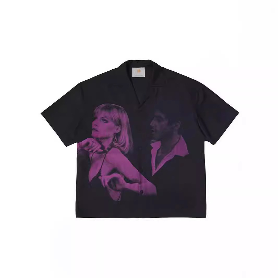 | nameOriginal | Summer Scarface Movie Theme Figure Print American Style Retro Elegant Design Sense Trendy Short Sleeve Flower Lining |