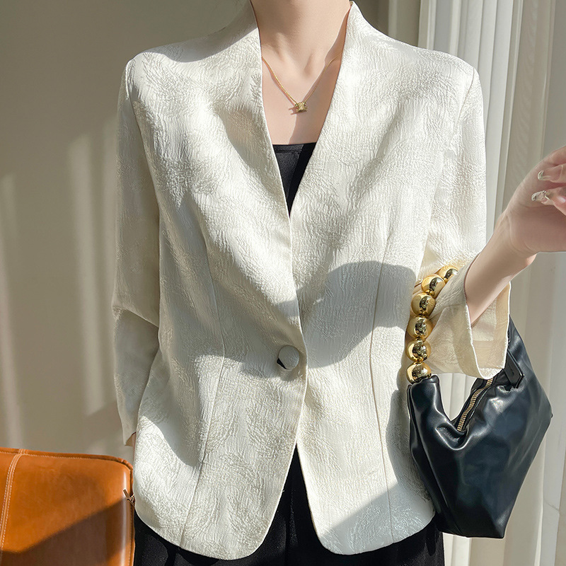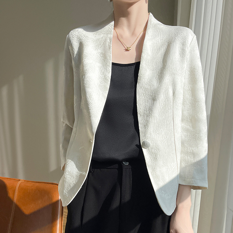 | nameOriginal | Summer Seven-Sleeve Satin Silk Jacket Women's Loose Casual Elegant All-Match Short Suit Thin Small Suit |