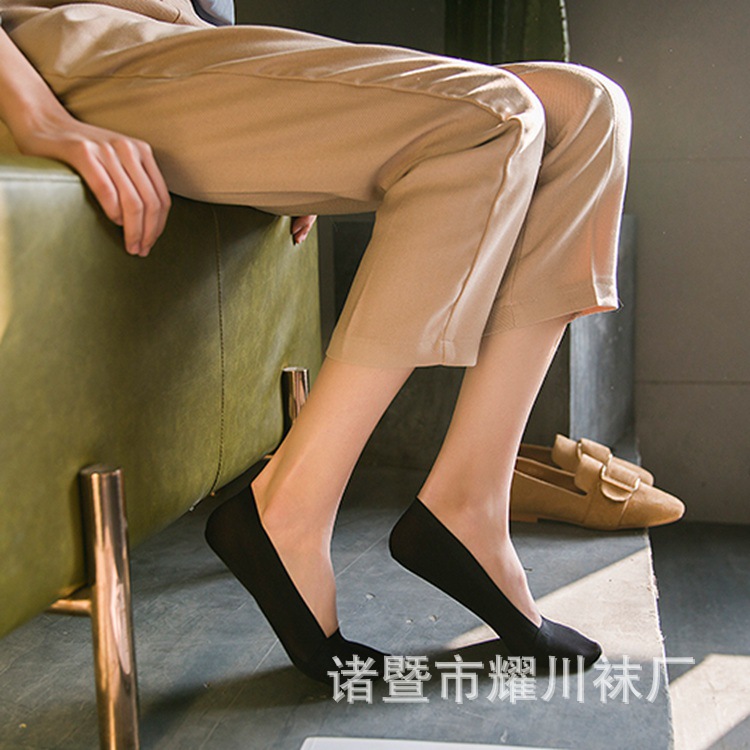 Summer shallow mouth a circle of silicone boat Socks cotton bottom solid color simple lock Edge Ice Silk women's socks invisible socks wholesale
