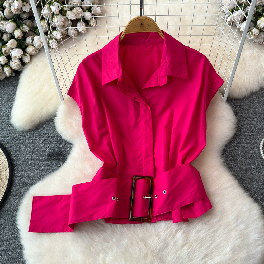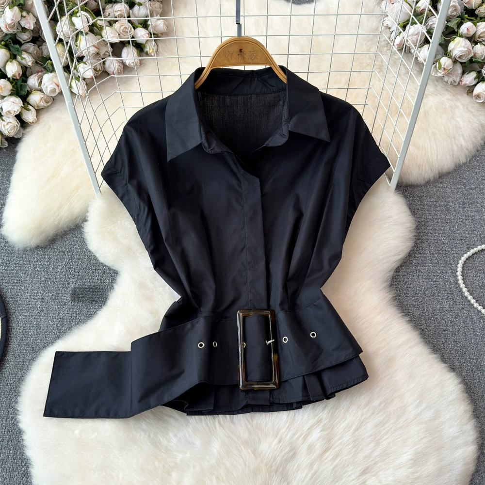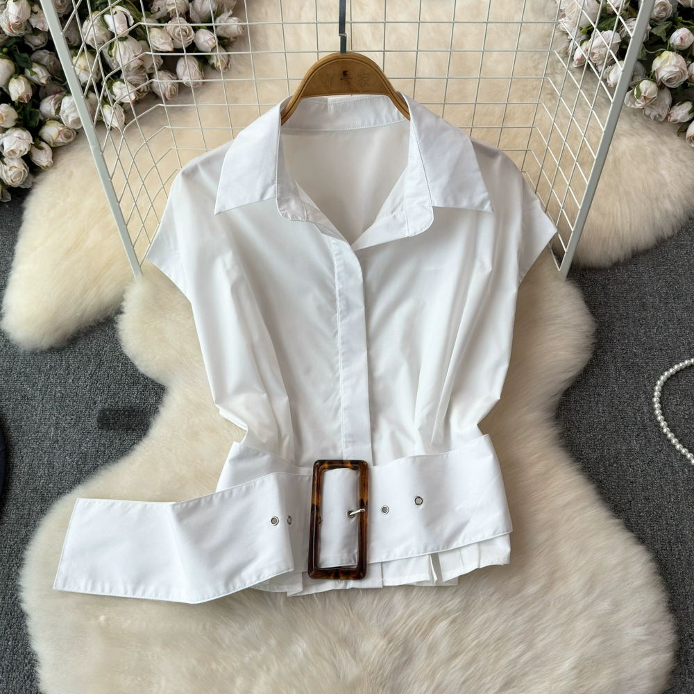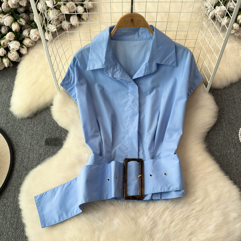 | nameOriginal | Summer shirt women's design waistband short lapel short-sleeved French top 2024 new versatile shirt |