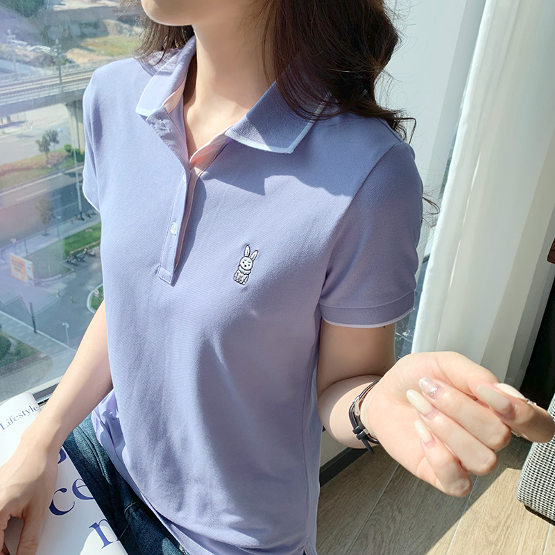 | nameOriginal | Summer Short-sleeved Embroidered Rabbit Polo Shirt Women's Slim-fit plus size Fashion T-shirt Lar Casual Shoulder T-shirt Top |