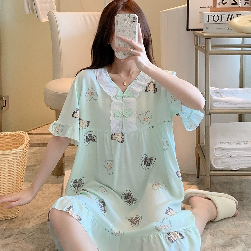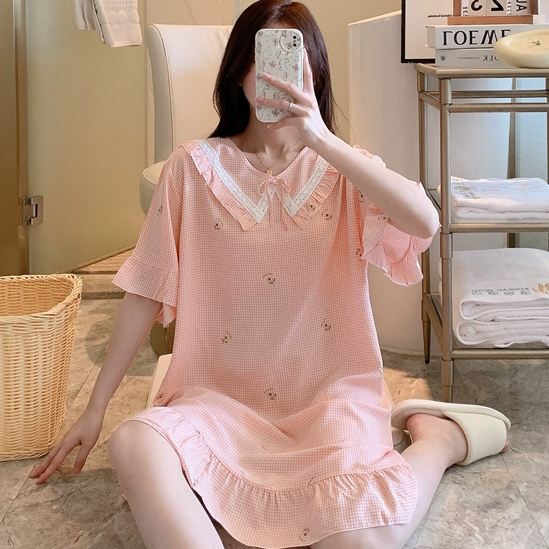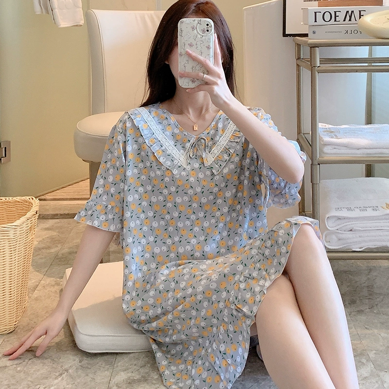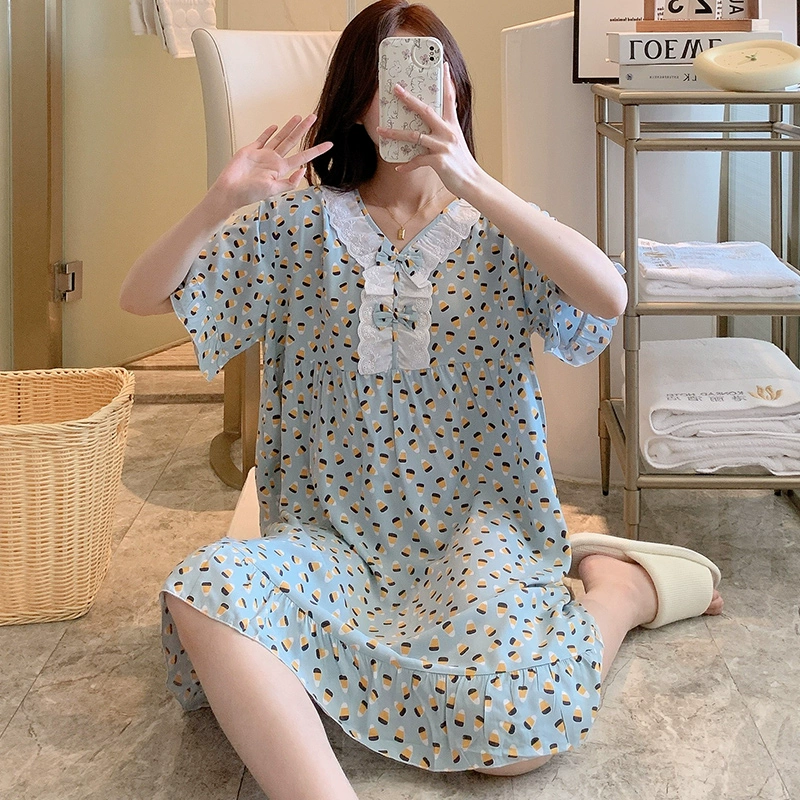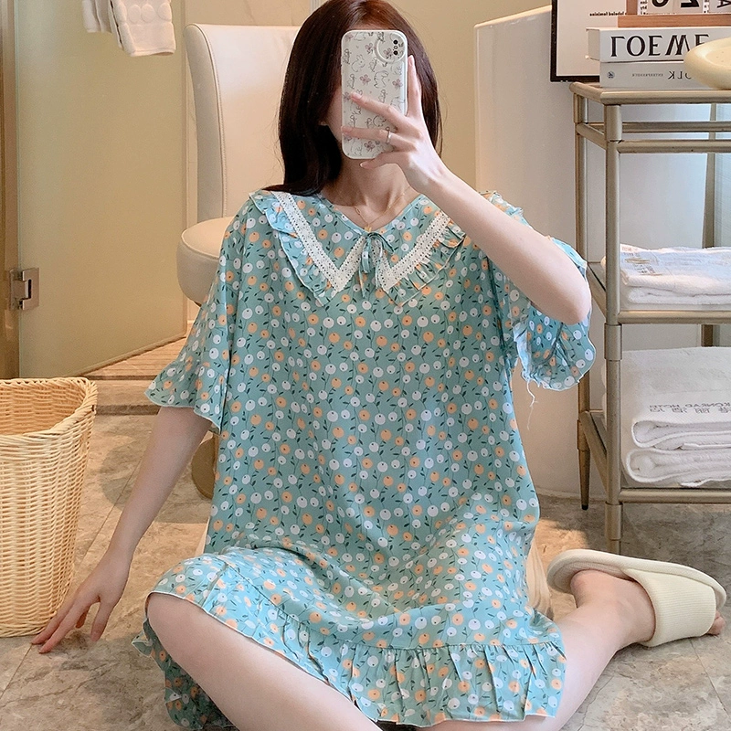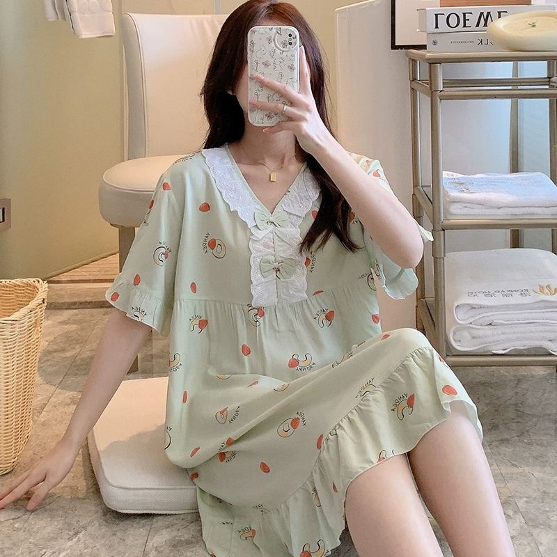 | nameOriginal | Summer short-sleeved nightgown for women thin princess style cotton silk pajamas home wear Korean style student loose large size cotton silk skirt |