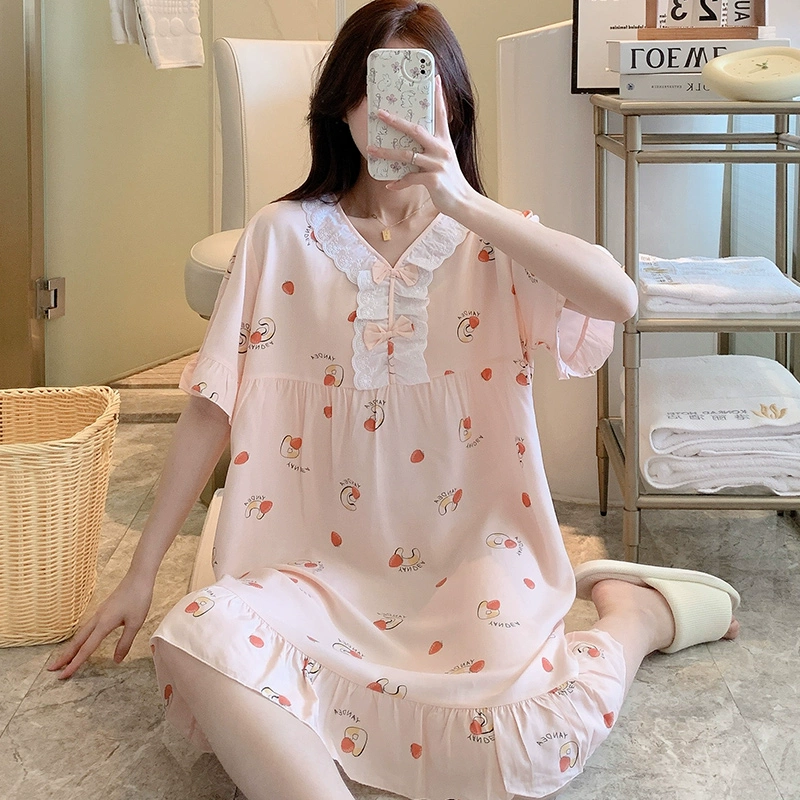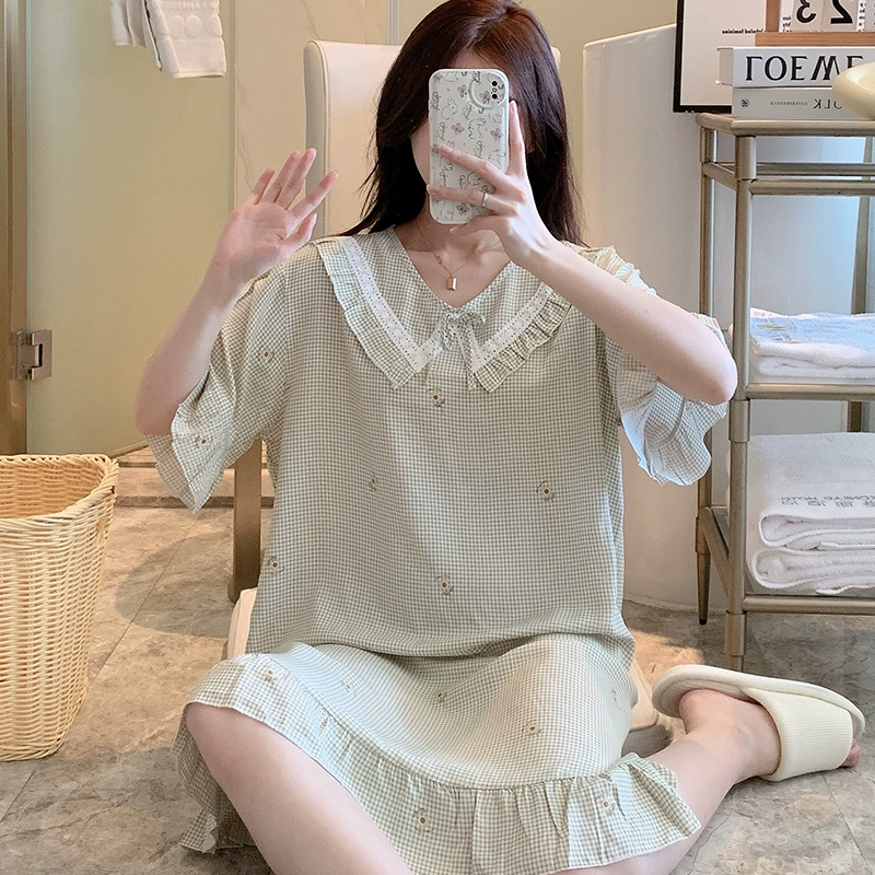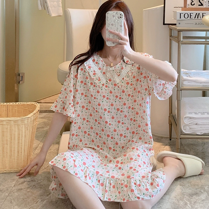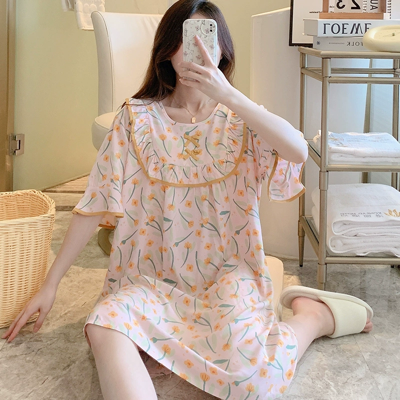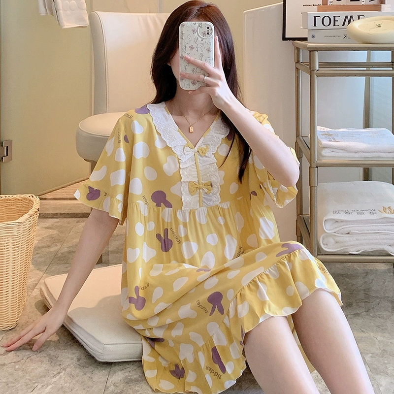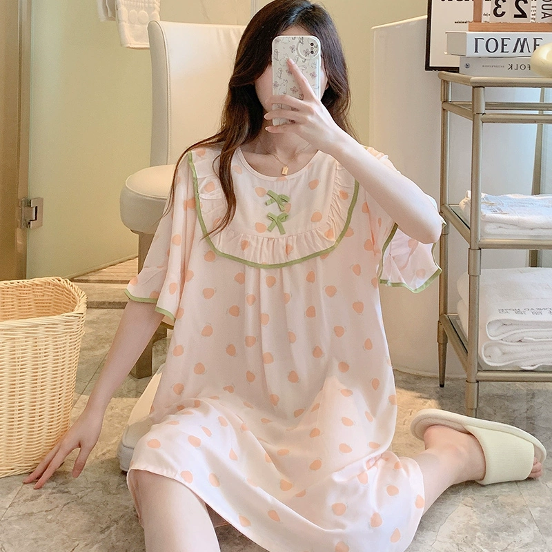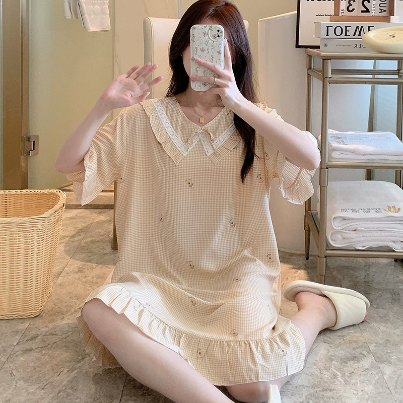 | nameOriginal | Summer short-sleeved nightgown for women thin princess style cotton silk pajamas home wear Korean style student loose large size cotton silk skirt |